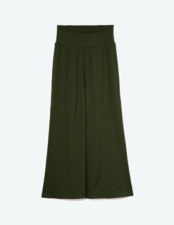 柔らかなランダムリブカットソー生地を使用したキャミソールセットアップ。トップスはタイト、パンツはワイドシルエットでメリハリのあるスタイルでありながら、パットと腹巻付きで過ごしやすいリラクシングウェア。ブラウンとグリーンの2色展開です。