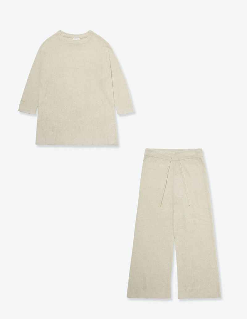 しっとりとした手触りのパウダーニットセットアップ。 やわらかく伸びのいい素材で心地よく包まれ暖かくお過ごしいただけます。 リブのシンプルなデザインでベーシックなカラー展開で ギフトアイテムとしてもおすすめです。 〈商品に関しまして〉 やわらかくのびの良い着心地を重視してお作りしております。 お洗濯の際は平干しをし、保管の際はハンガーを使用せず たたみで保管ください。 ニット製品は、生産過程上、加工によってサイズに誤差が 生じる場合がございますが品質上の問題はございません。