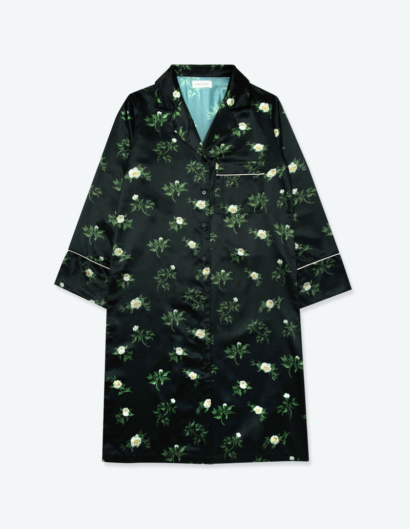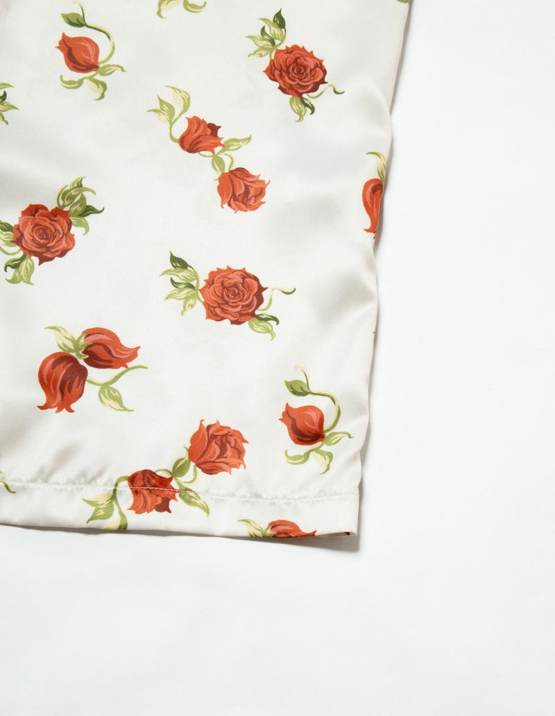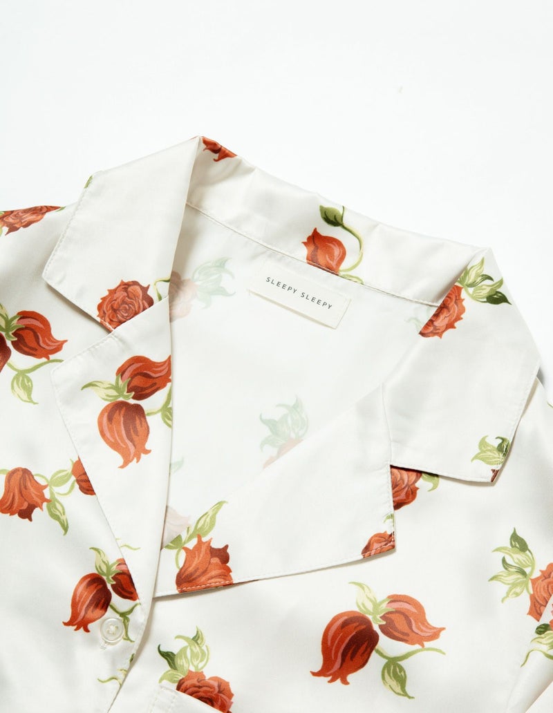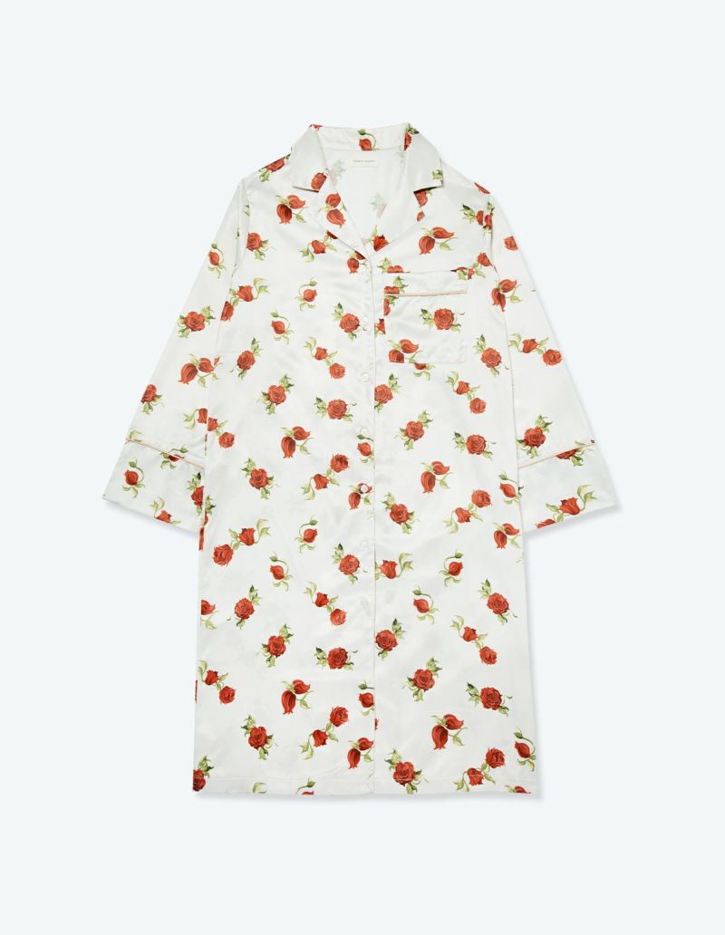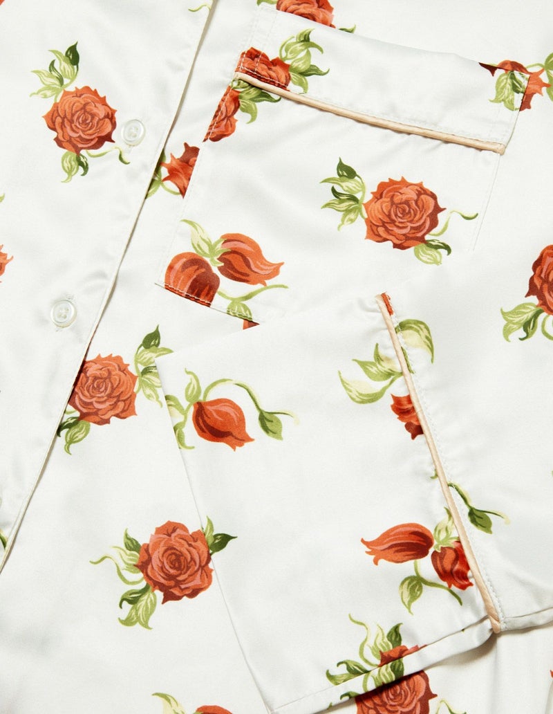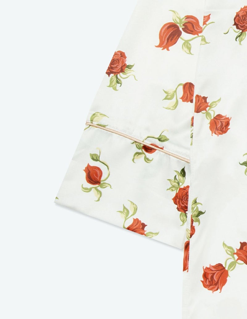 摘み取ったローズを散りばめたような、フラワープリントの長袖ワンピース。微光沢のサテン生地がさらりとした肌触りで、シーズンレスに着用可能な素材です。華やかなレッドローズとシックなフラワーローズの2色展開。