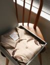 ロッテ浦和工場の製造工程で出たカカオハスク(カカオ豆の皮)を有効活用し、 自然のままの風合いで、やさしい表情をみせるパジャマは、 おうちでの上質なリラックスタイムをお過ごしいただけます。