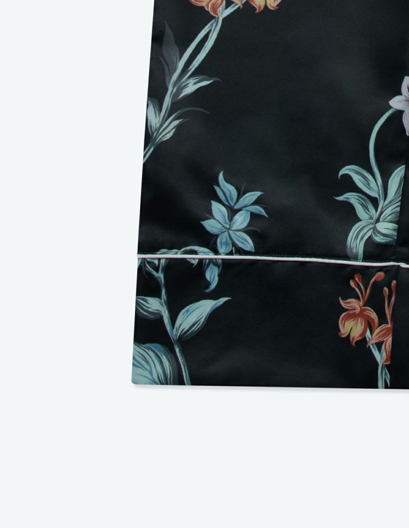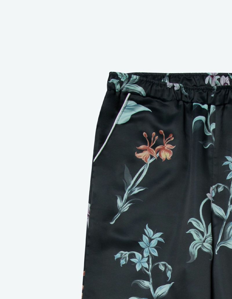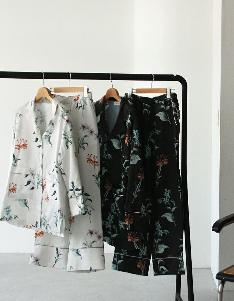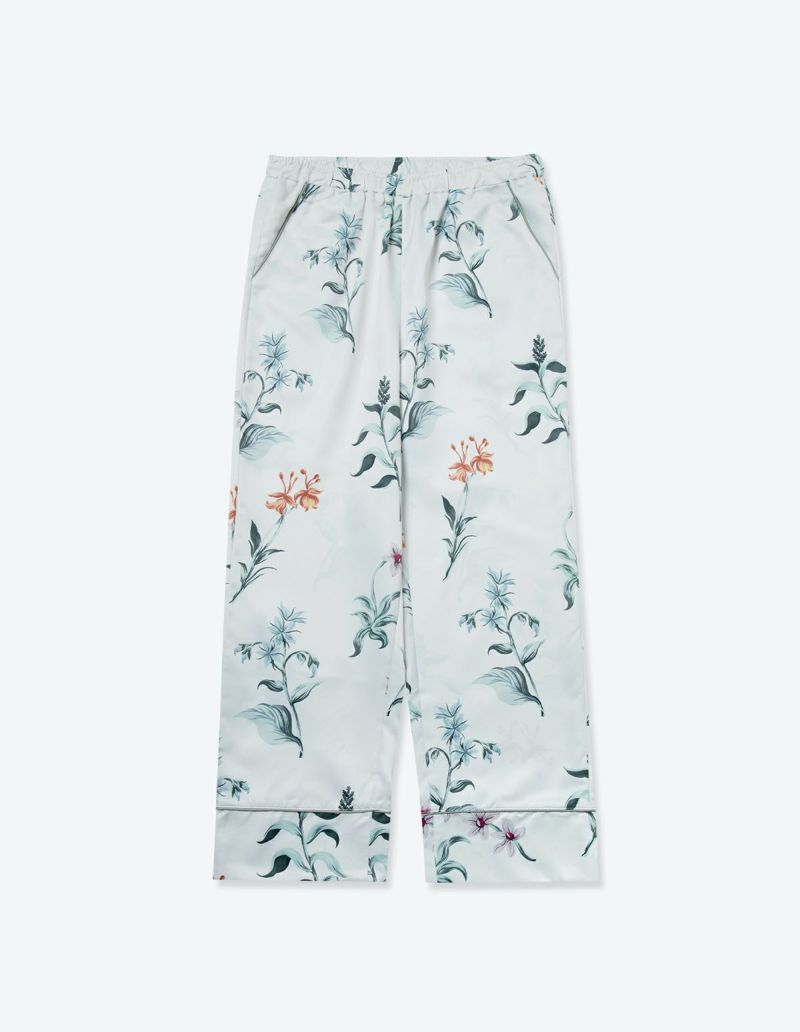 庭園を美しく彩る野に咲く花々を集めた牧歌的なフラワープリントの長袖ロングパンツ。野花の自然な美しさを落ち着いたクリアなカラーリングでまとめたフラワーパターン。 着丈のゆったりとしたデザインと落ち感のある生地が相まって上品な印象に。 ペアアイテムとしてもおすすめです。