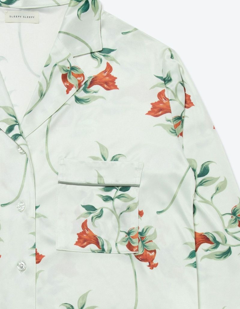 「祝福」の象徴として描かれるザクロと、対をなすような鮮やかな花と葉っぱのコントラストを甘な曲線で描いたフラワープリントパジャマ。 カットソー生地の長袖ロングパンツで微光沢のある生地感は上質なイメージを演出。さらりとした肌触りで心地よく着用いただけます。 ペアアイテムとしてもおすすめ。