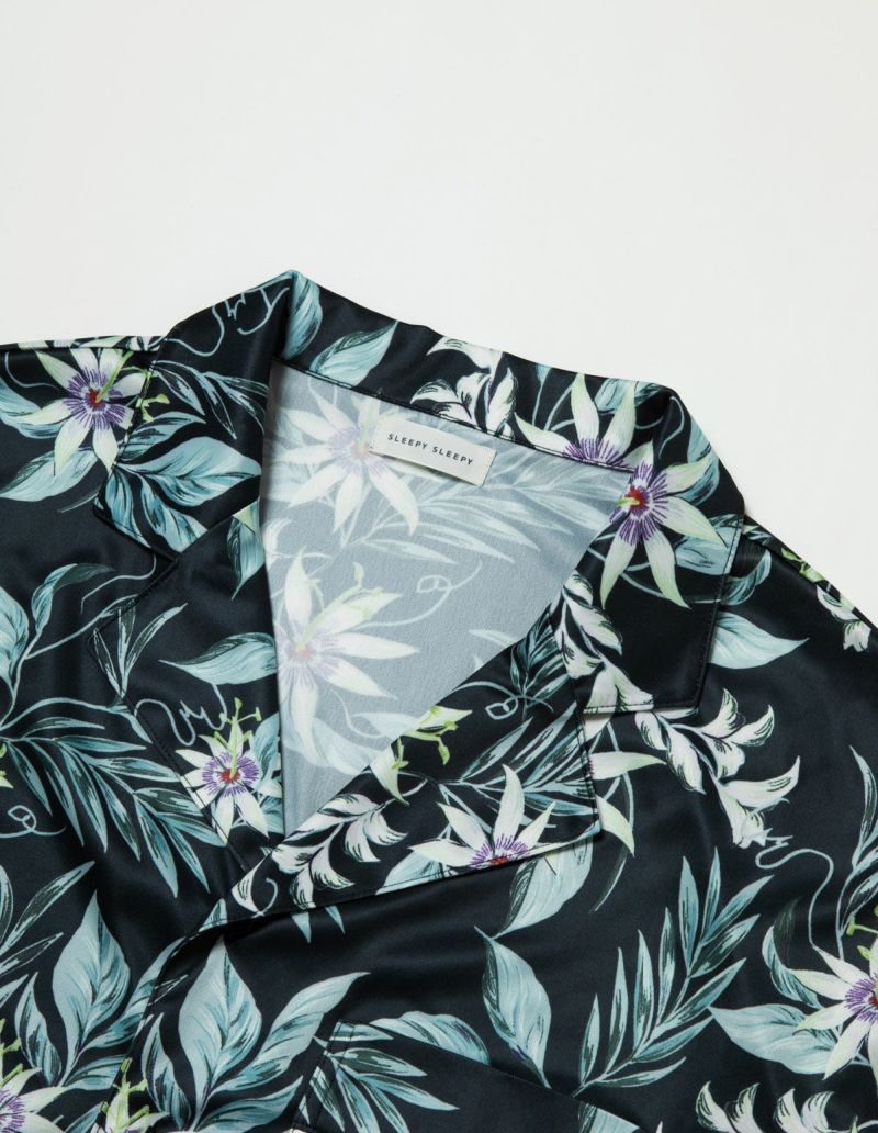 【ペア展開あり】メンズパッションフラワーパジャマ 半袖ハーフパンツ【メンズ】