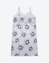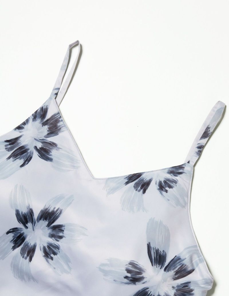 光でうつしとった花弁をイメージして大胆に描かれたフラワープリントワンピースセット。パット付きのキャミソール とのセットでそれぞれ着回しのきくアイテム。微光沢のサテン生地がさらりとした肌触りで、シーズンレスに着用可能な素材です。おそろいで着られるペアパジャマとして誕生日のギフト、結婚祝いなど様々なお祝いシーンにもおすすめ。