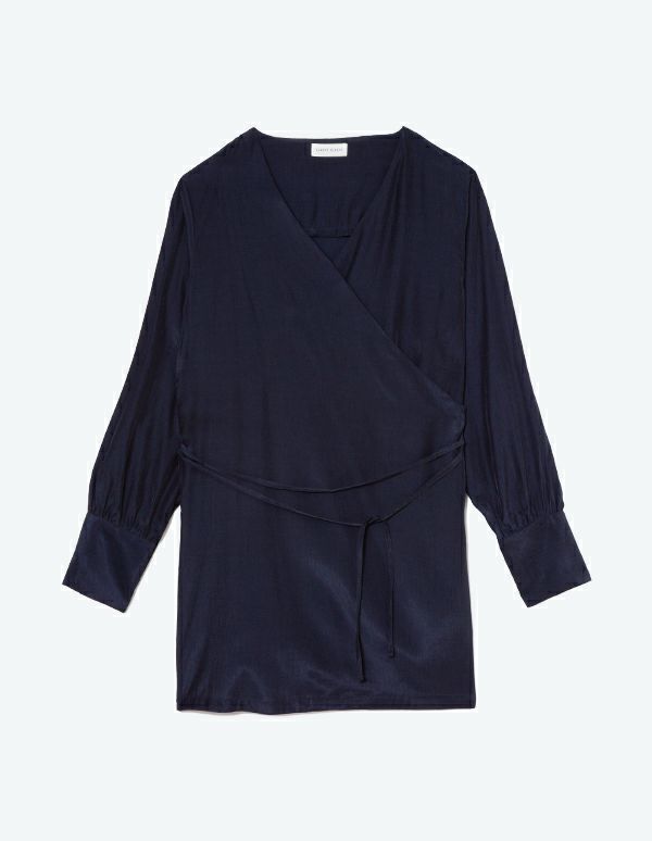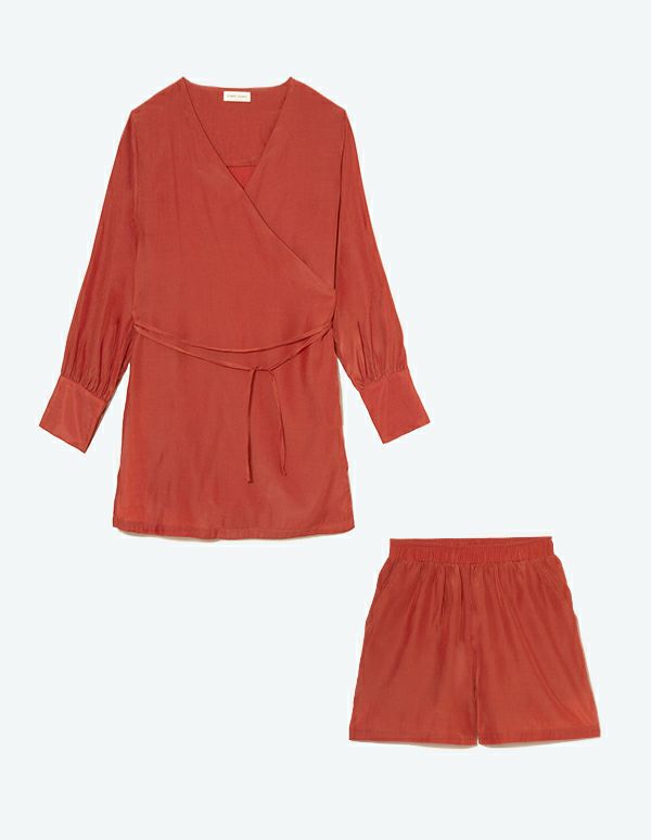 ラップデザインがエレガントな女性を演出する長袖&ショートパンツ