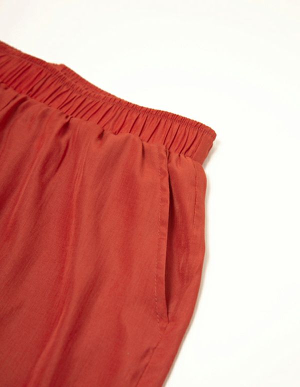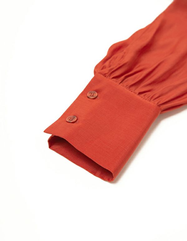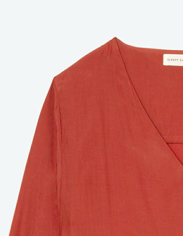 デザイン性と着心地の両方を兼ね備えたセットアップは、リラックスタイムを快適に過ごせるアイテムです。上品な微光沢のあるレーヨン生地を使用し、さらりとした肌触りが気持ちのいい長袖&ショートパンツのセットは、ボリューム感のある袖が女性らしく、ガウンのように羽織れるラップデザインで着回しの幅も広がります。シックに着られるネイビーと華やかなオレンジの2色展開です。