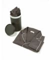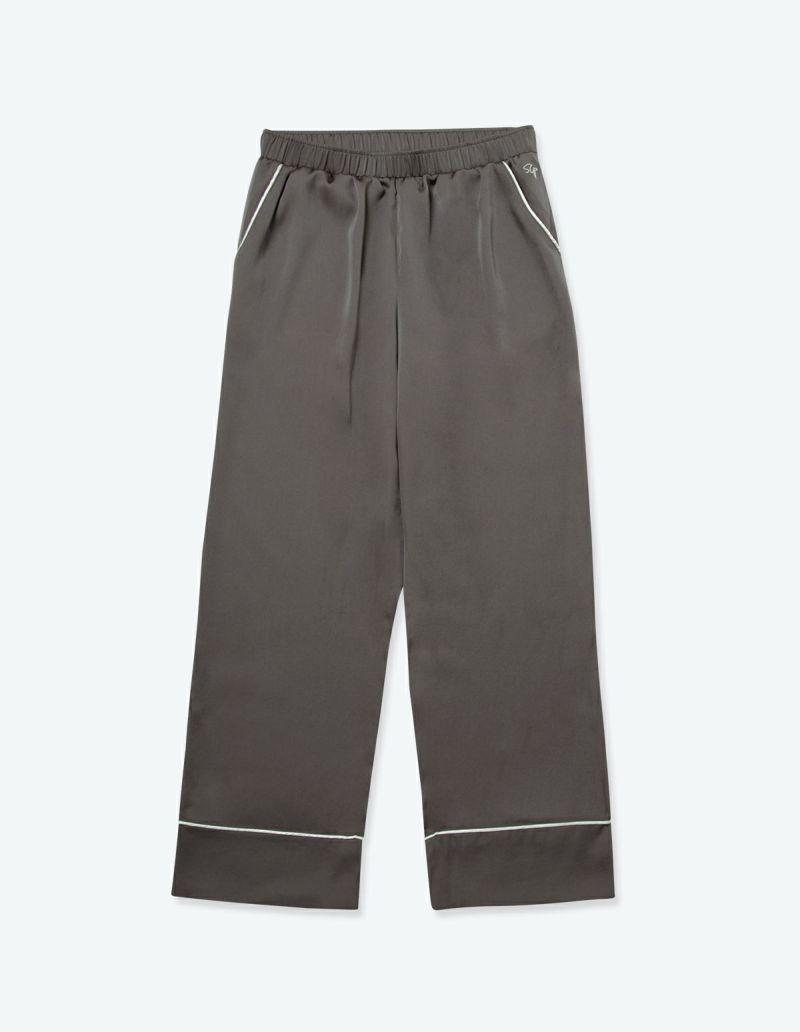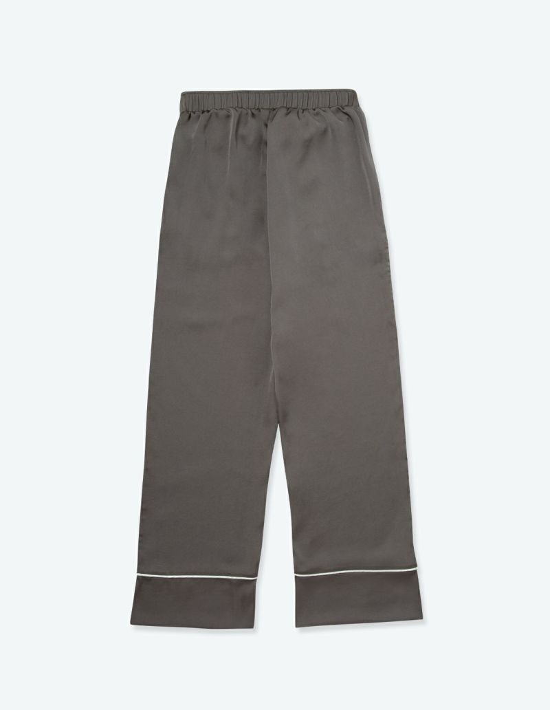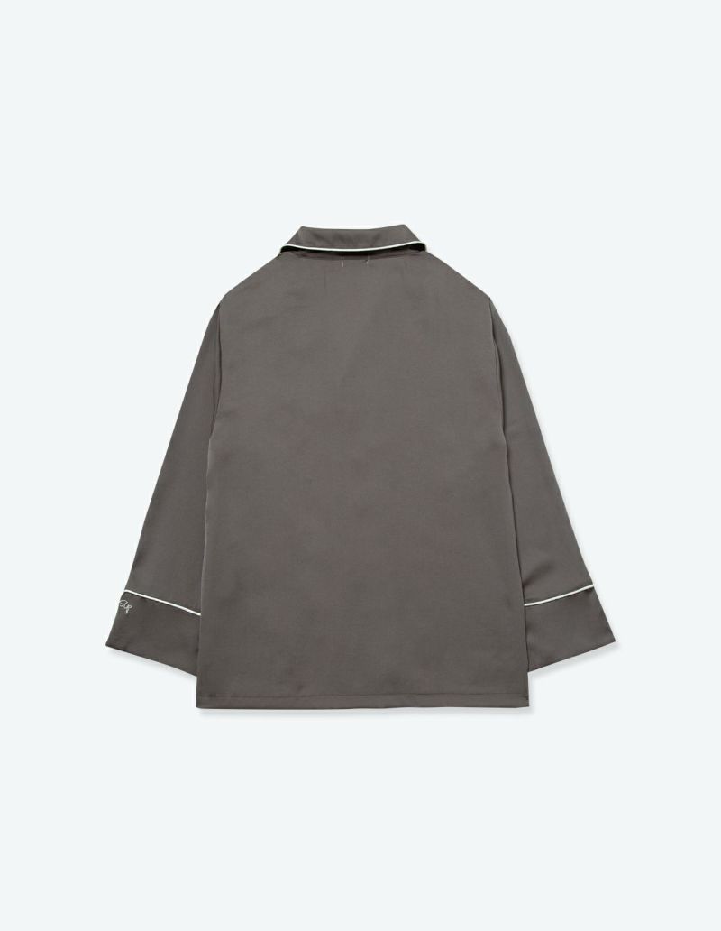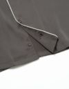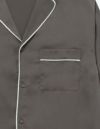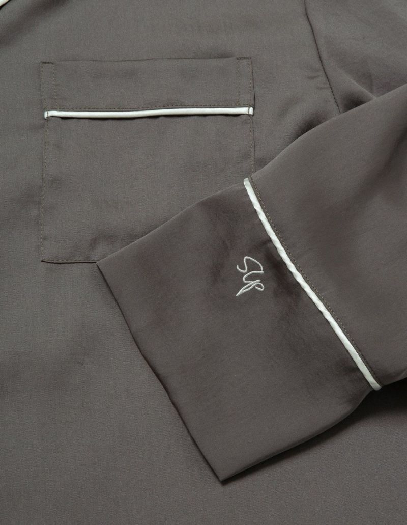 高級感のある微光沢のサテンを使用したパジャマセットです。密に織られた生地で型崩れしにくく、長い間ご愛用いただけるロングシーズン着用可能なパジャマ。 落ち感のある風合いが柔らかな生地のためすっきりとしたシルエットに。袖口&裾に幅広の切り替えが入ることで、袖・足長に見える効果も。他にない深めのニュアンスカラーにホワイトのパイピングでクリアな印象に。チャコールグレーのシックなパッケージ付き。
