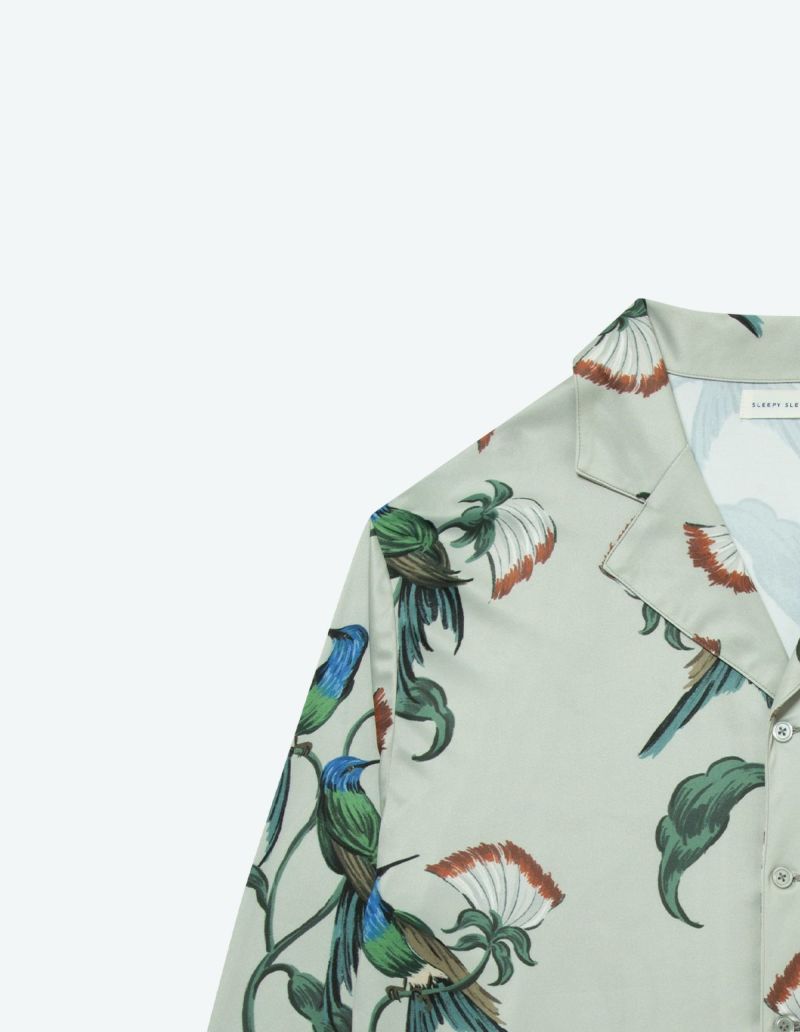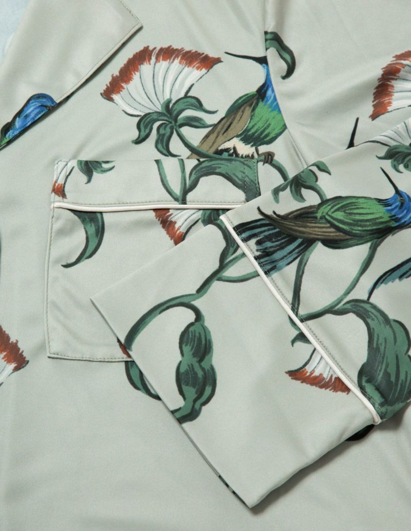 ラフな筆のタッチで描いた扇型の花とハチドリをイメージした鳥を掛け合わせた華やかなメンズプリントパジャマセット。大胆な大柄でありながらソフトな肌触りの素材と掛け合わさることで上品な印象に。伸縮性の良いカットソー素材は薄手で落ち感があるためすっきりとしたシルエットを演出。薄手でさらりとして速乾性もあり心地よくお過ごしいただけます。 ペアアイテムとしてもおすすめ。