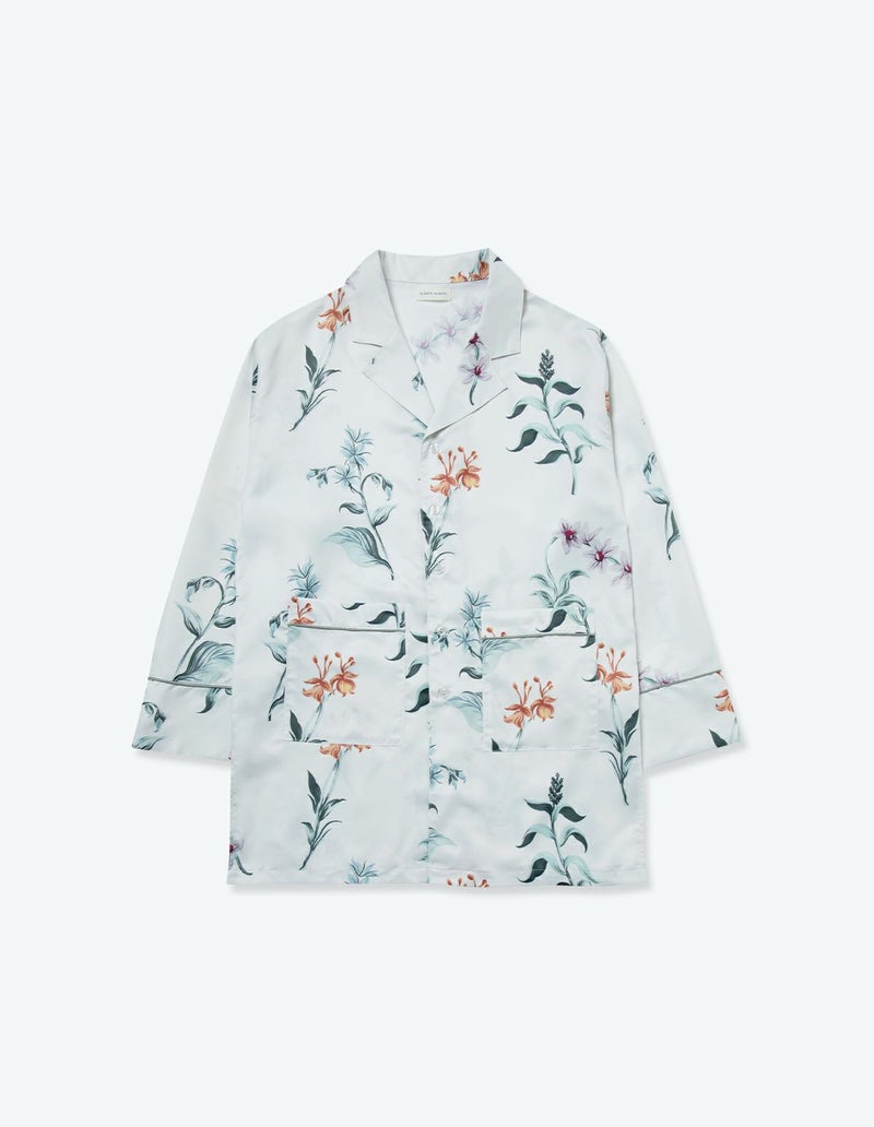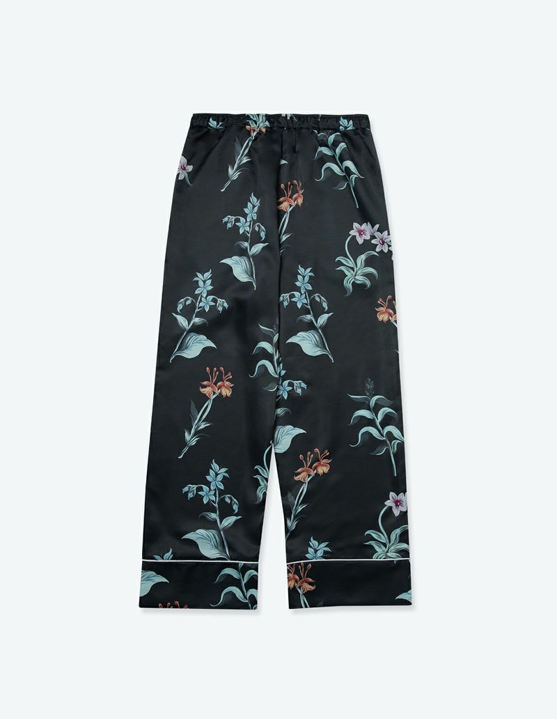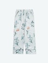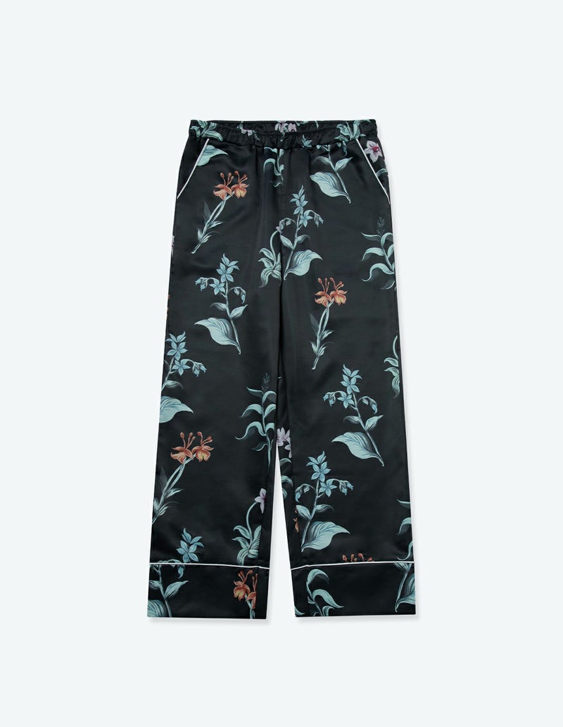 庭園を美しく彩る野に咲く花々を集めた牧歌的なフラワープリントの長袖ロングパンツ。野花の自然な美しさを落ち着いたクリアなカラーリングでまとめたフラワーパターン。 着丈のゆったりとしたデザインと落ち感のある生地が相まって上品な印象に。 ペアアイテムとしてもおすすめです。