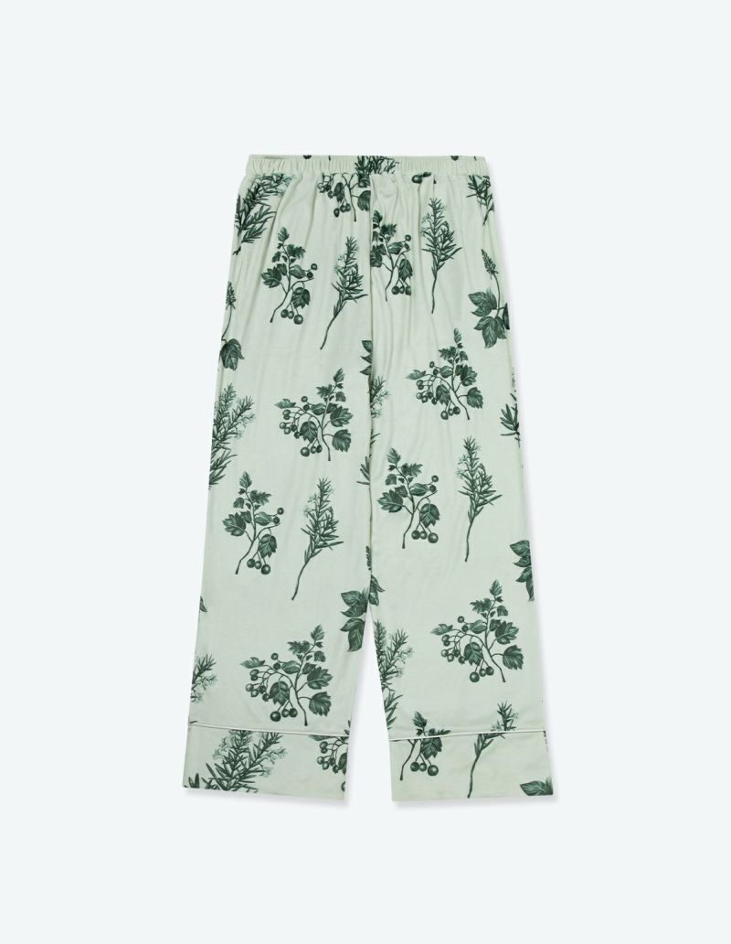 野に咲くハーブを銅版画のようなタッチで描いたフラワーパターンを、柔らかくしっとりとしたベロア生地プリントした長袖ロングパンツ。 繊細に描かれたハーブの凛とした印象で、やわらかなベロアパジャマをシックにまとめました。 着心地の柔らかなベロアは保温性も高く暖かくお過ごしいただけます。 ペアアイテムとしてもおすすめ。