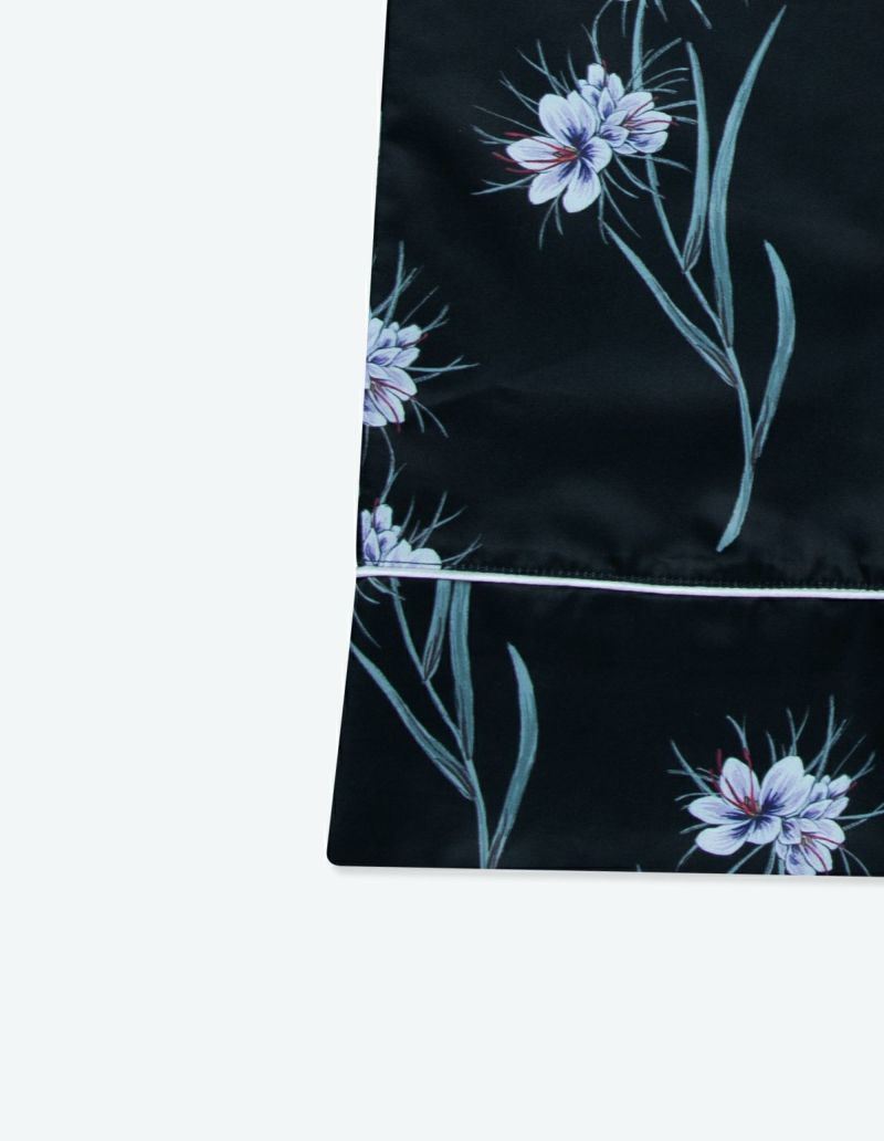 ヒーリング効果のあるサフランを繊細なタッチで描いたフラワーパジャマ。ヒーリングの名前を表すように癒しの雰囲気のあるカラーリングで透明感のあるデザインに仕上げたパジャマ。 ペアアイテムとしてもおすすめです。