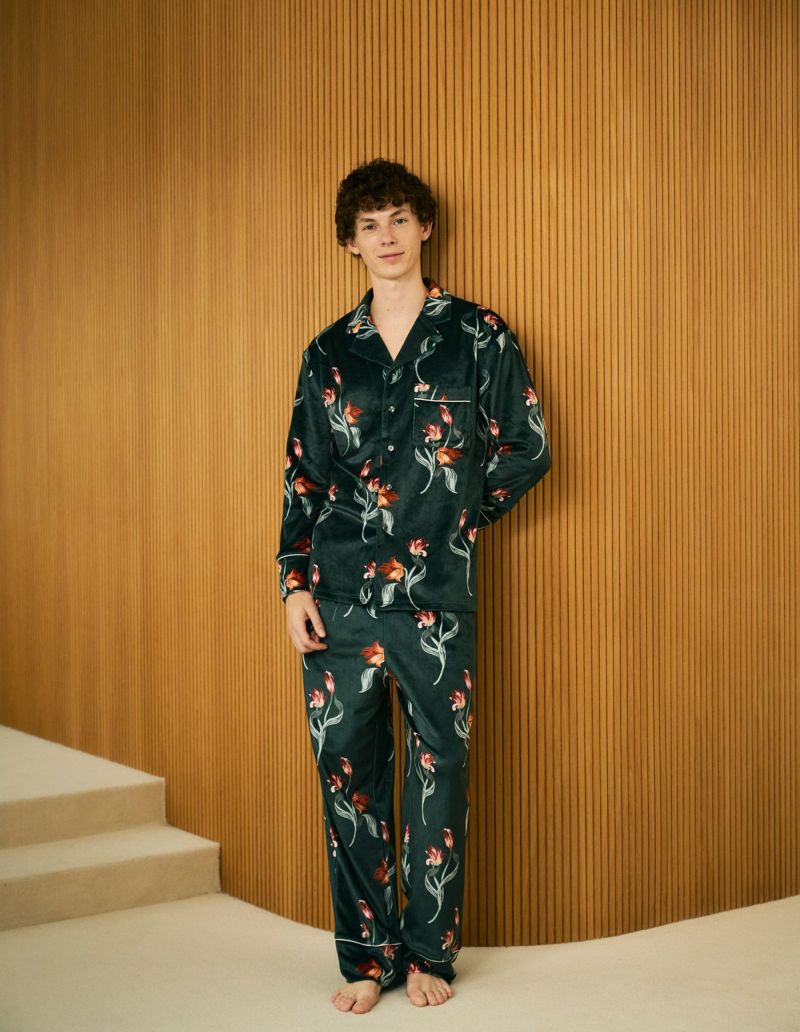メンズベロアチューリップフラワーパジャマ 長袖ロングパンツ
