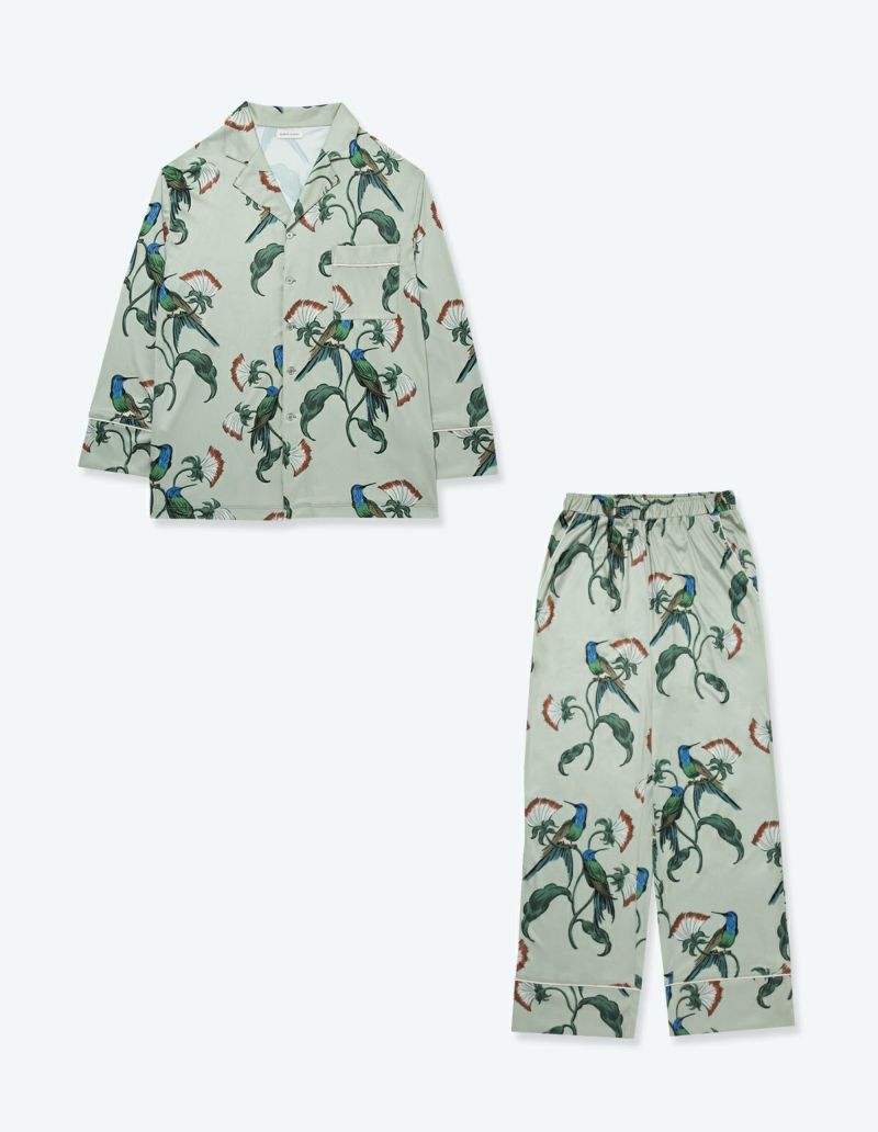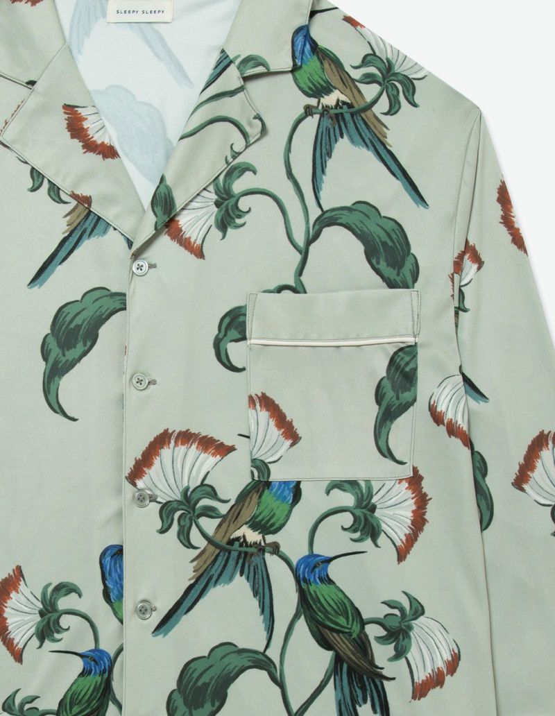 ラフな筆のタッチで描いた扇型の花とハチドリをイメージした鳥を掛け合わせた華やかなメンズプリントパジャマセット。大胆な大柄でありながらソフトな肌触りの素材と掛け合わさることで上品な印象に。伸縮性の良いカットソー素材は薄手で落ち感があるためすっきりとしたシルエットを演出。薄手でさらりとして速乾性もあり心地よくお過ごしいただけます。 ペアアイテムとしてもおすすめ。