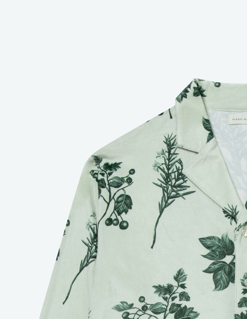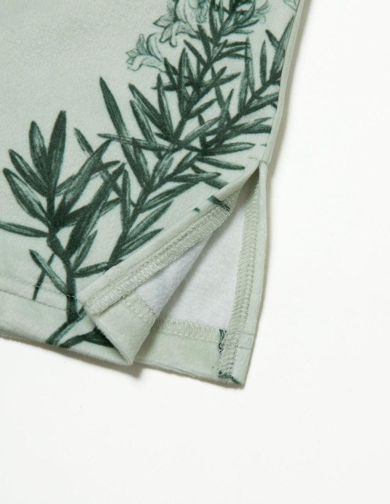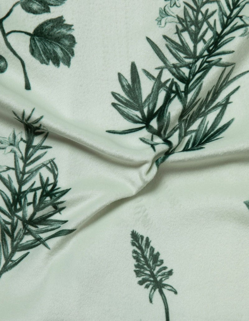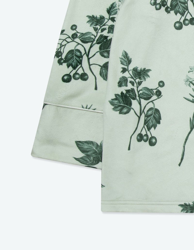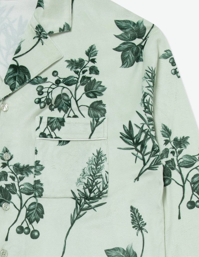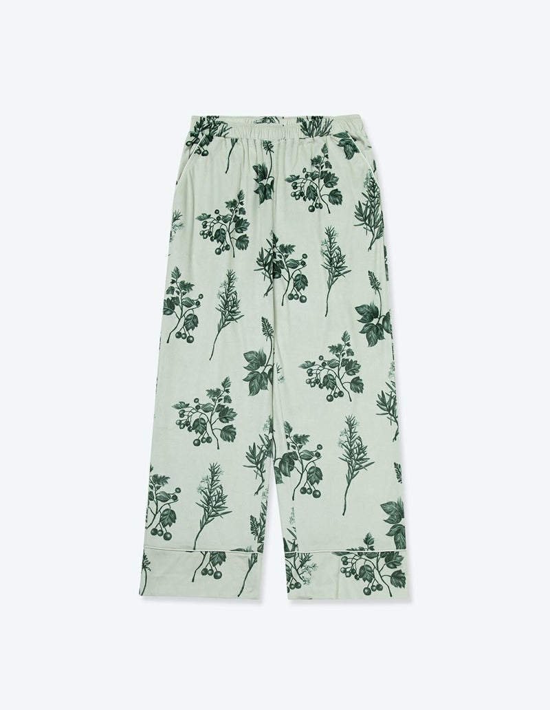 野に咲くハーブを銅版画のようなタッチで描いたフラワーパターンを、柔らかくしっとりとしたベロア生地プリントした長袖ロングパンツ。 繊細に描かれたハーブの凛とした印象で、やわらかなベロアパジャマをシックにまとめました。 着心地の柔らかなベロアは保温性も高く暖かくお過ごしいただけます。 ペアアイテムとしてもおすすめ。