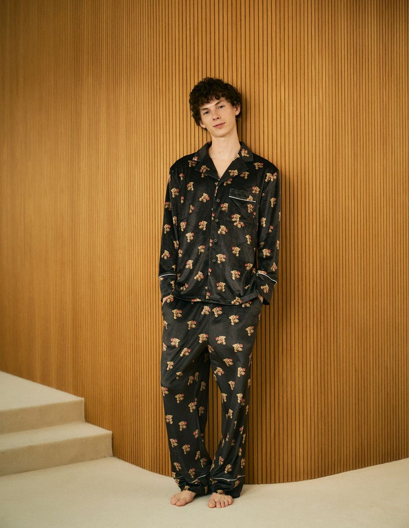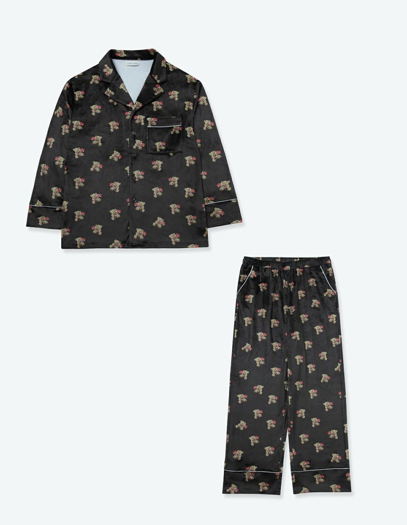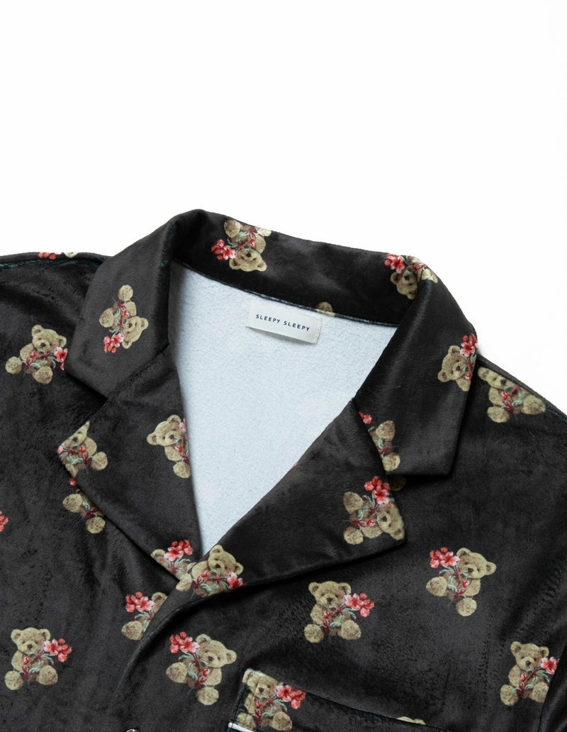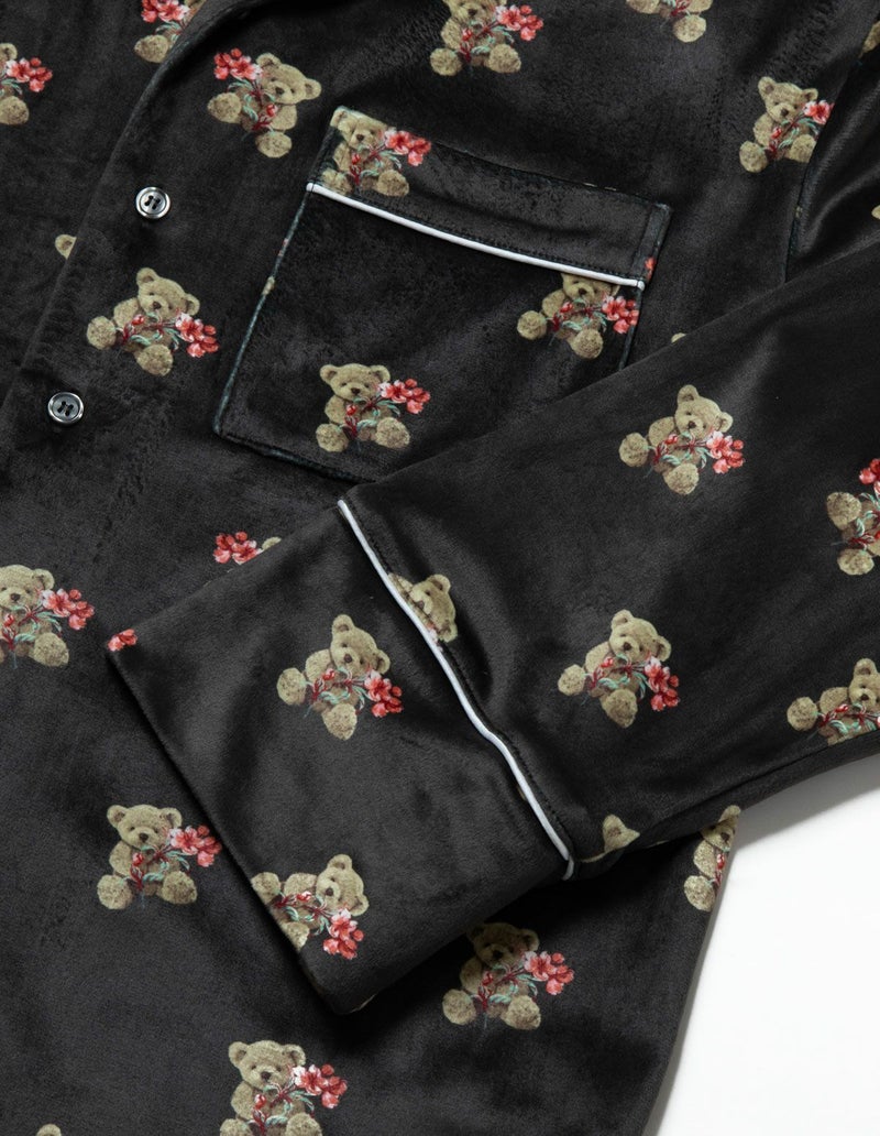 【ペア展開あり】メンズベアフラワーベロアパジャマ 長袖ロングパンツ
