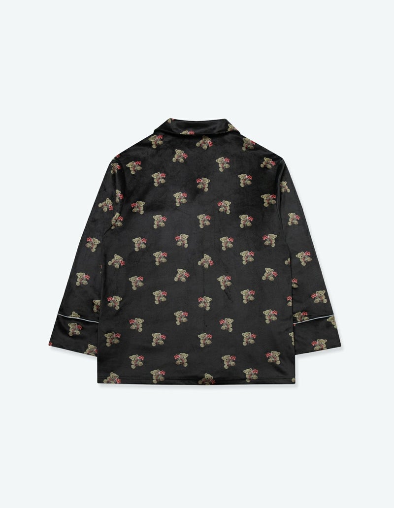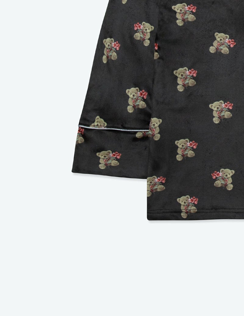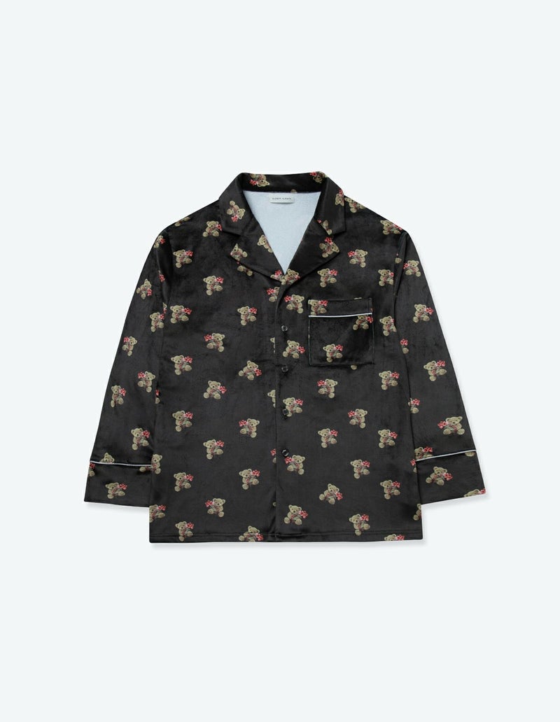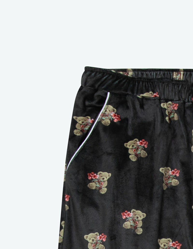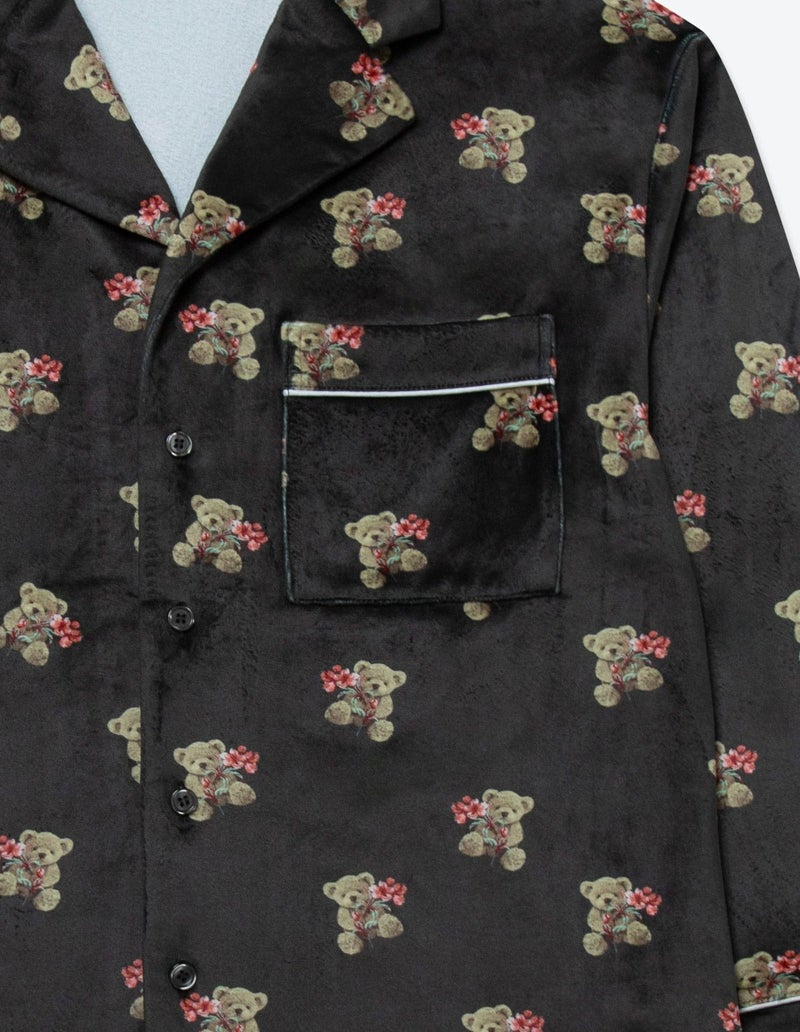 【ペア展開あり】メンズベアフラワーベロアパジャマ 長袖ロングパンツ