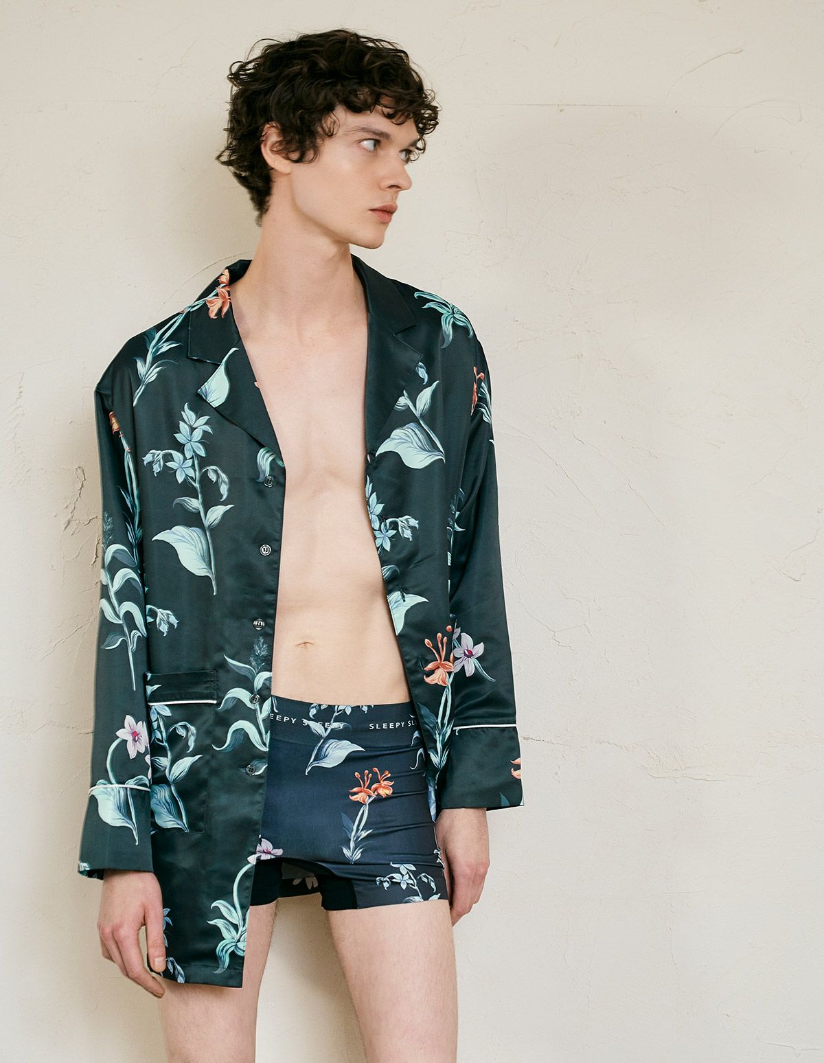 メンズヒーリングフラワーパジャマ 長袖ロングパンツ