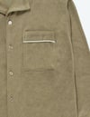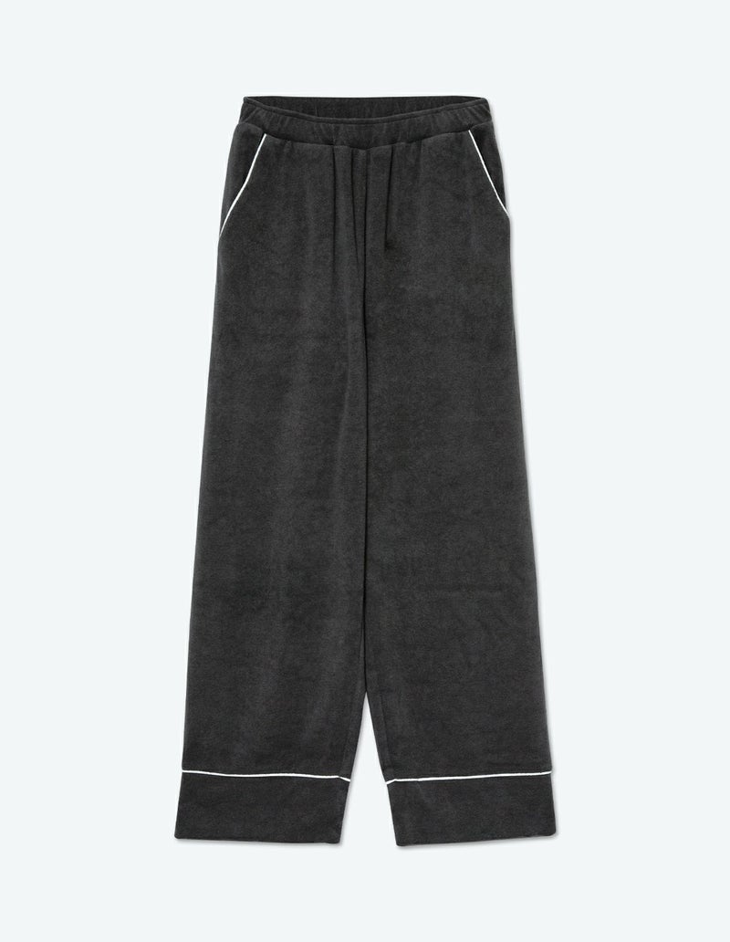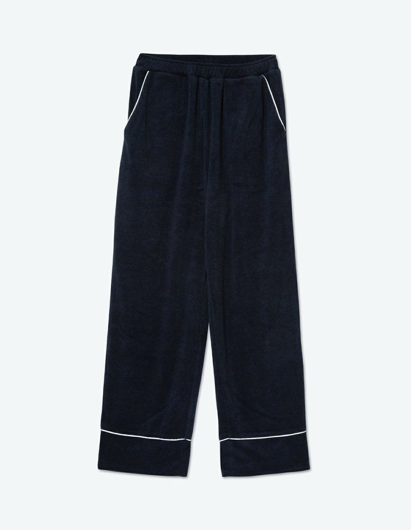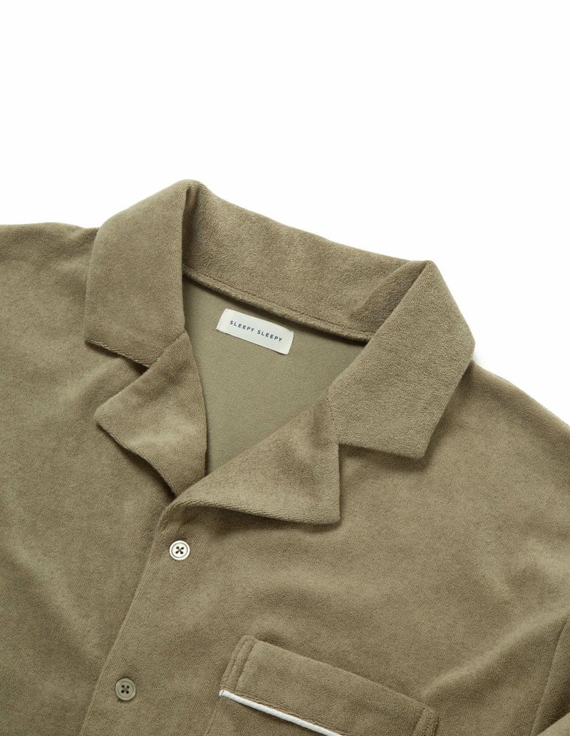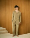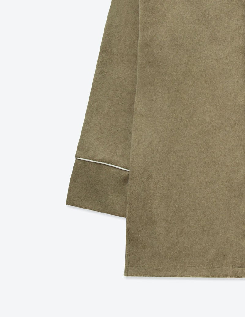 柔らかな肌触りのメンズパイルパジャマ長袖ロングパンツセット。ゆったりとしたシルエットでベーシックなシャツデザインに袖口とポケットのパイピングでアクセントをプラス。厚手の素材ながらもスッキリとしたシルエットに仕上げました。ペアアイテムとしてもおすすめです。