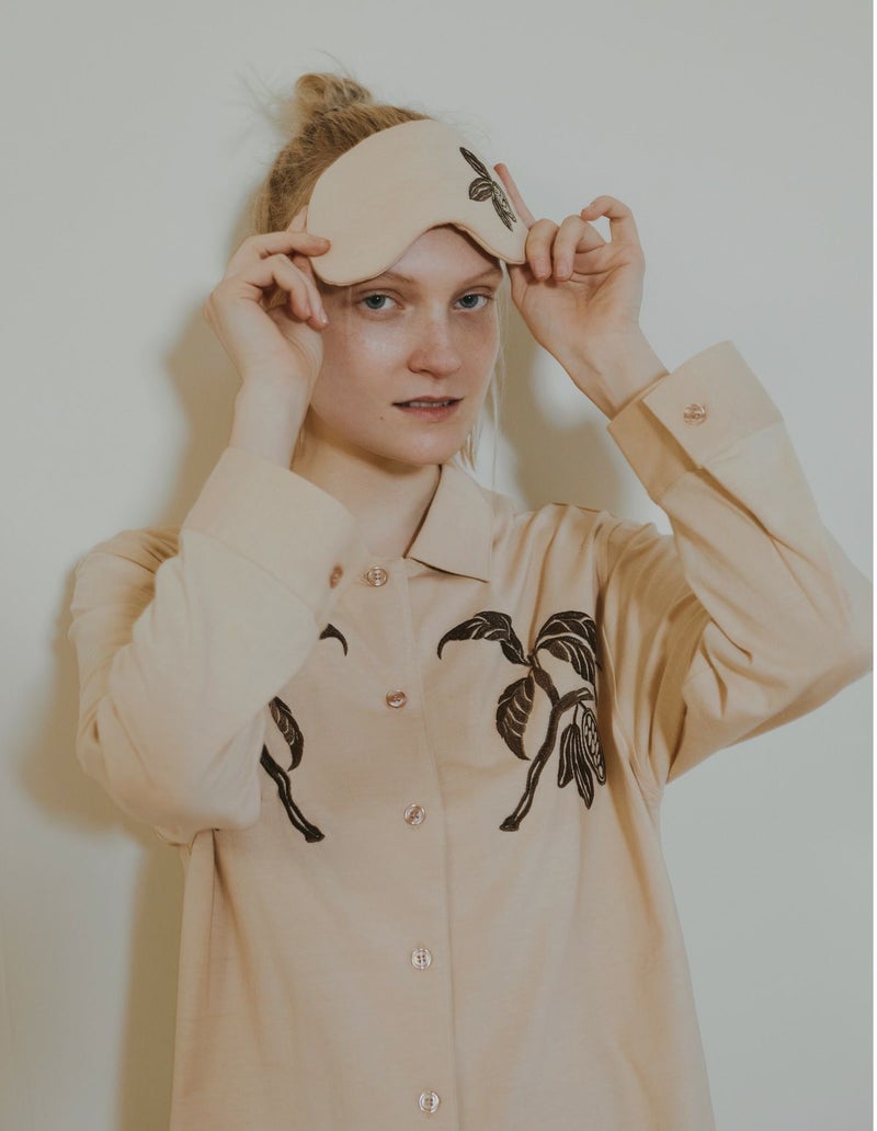 生地を「ボタニカルダイ」という手法で丁寧に染め上げたアイマスク 。