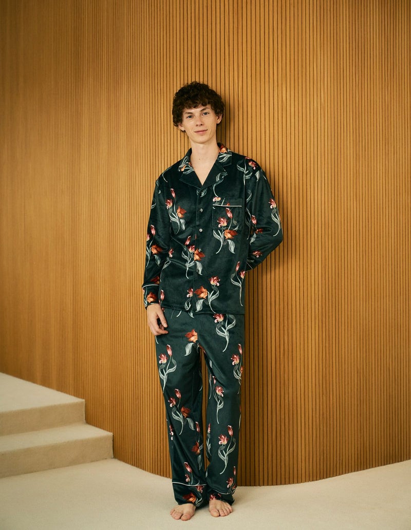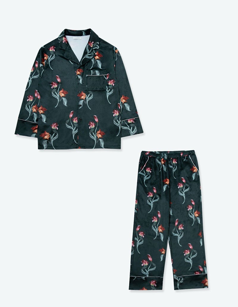 【ペア展開あり】メンズベロアチューリップフラワーパジャマ 長袖ロングパンツ