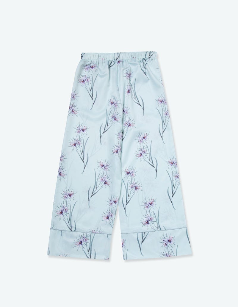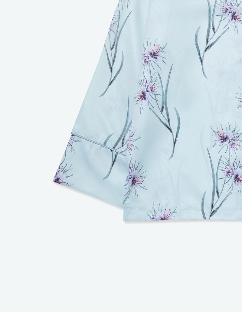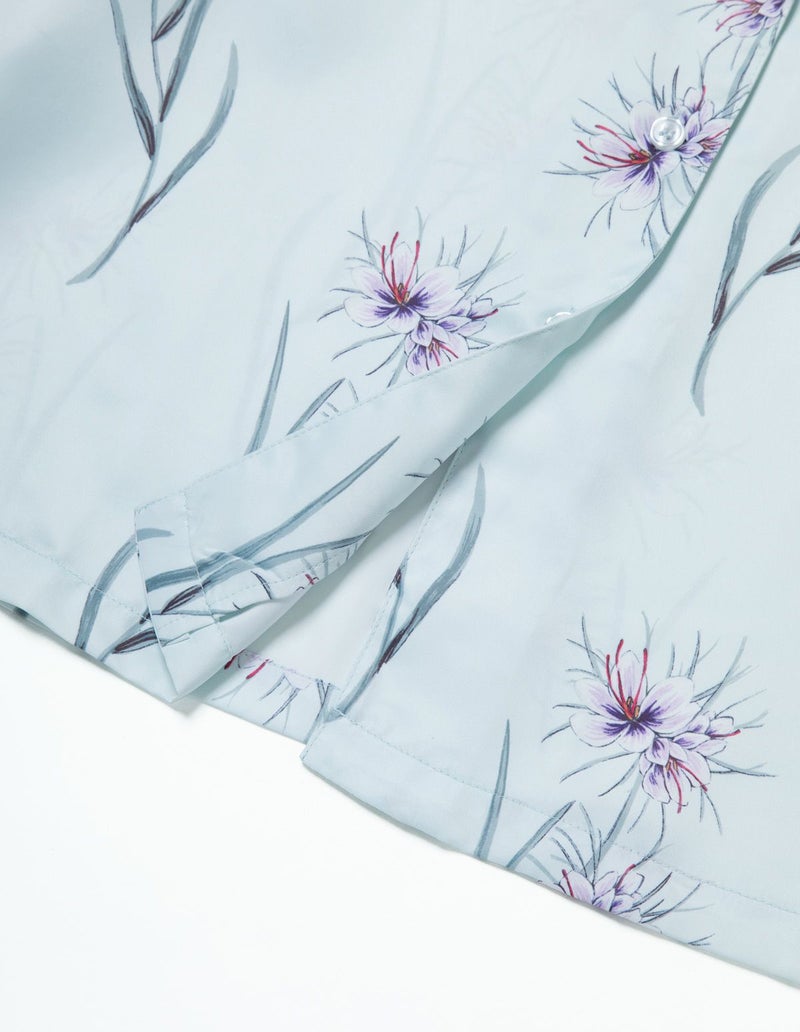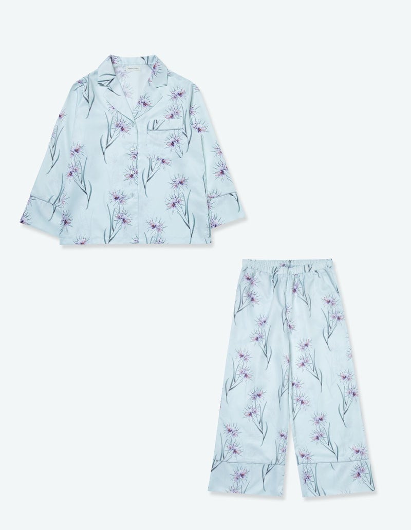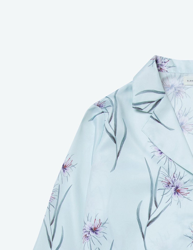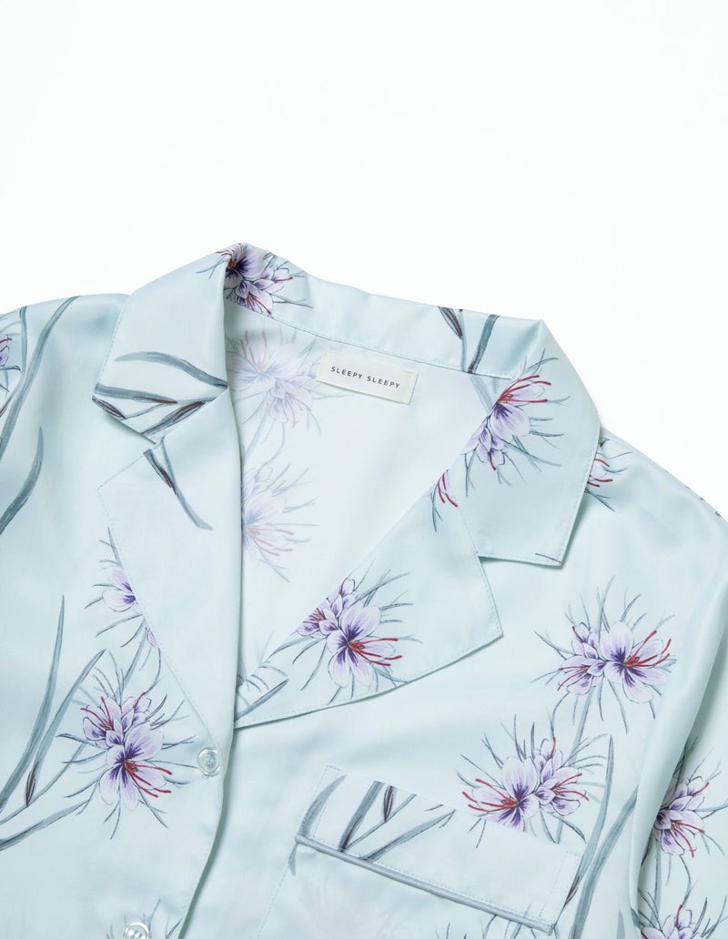ヒーリング効果のあるサフランを繊細なタッチで描いたフラワーパジャマ。ヒーリングの名前を表すように癒しの雰囲気のあるカラーリングで透明感のあるデザインに仕上げたパジャマ。 ペアアイテムとしてもおすすめです。