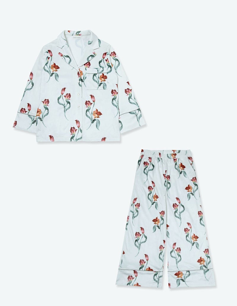 【ペア展開あり】ベロアチューリップフラワーパジャマ 長袖ロングパンツ