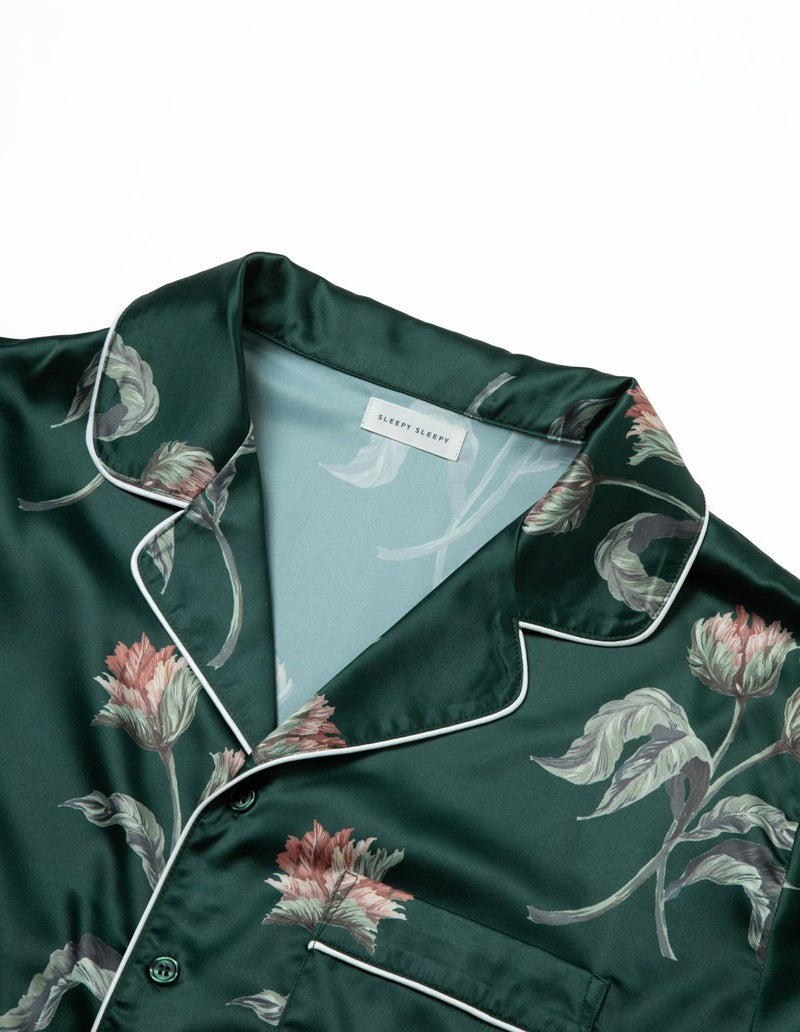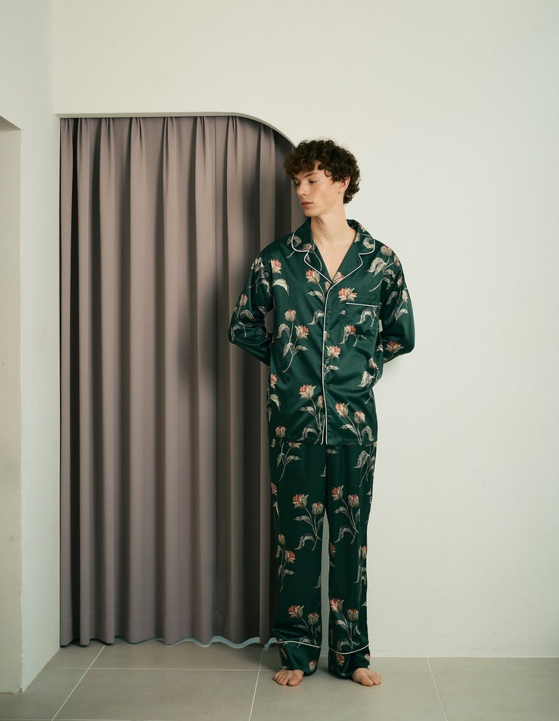 【ペア展開あり】メンズサテンフラワーパジャマ/長袖ロングパンツ【メンズ/BOX付】
