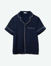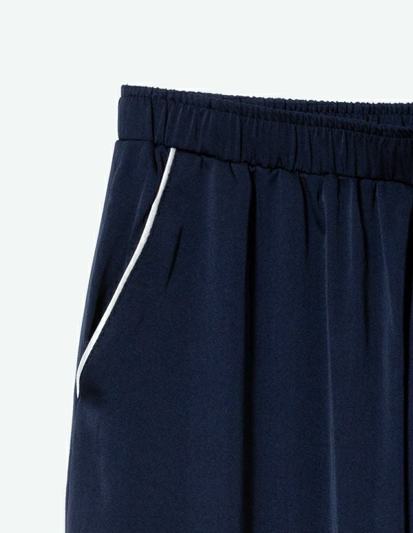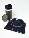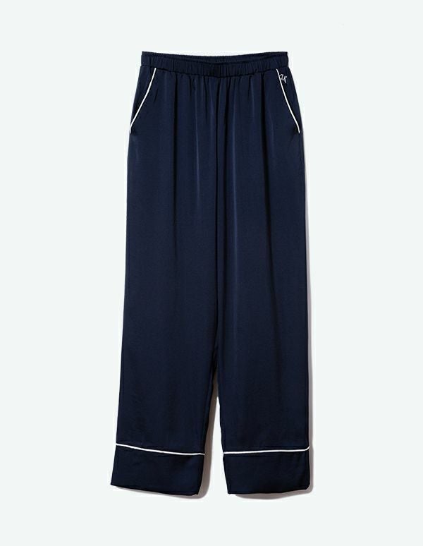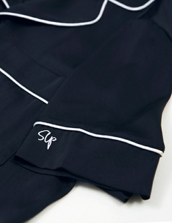 高級感のある微光沢のサテンを使用したパジャマセットです。密に織られた生地で型崩れしにくく、長い間ご愛用いただけるロングシーズン着用可能なパジャマ。 落ち感のある風合いが柔らかな生地のためすっきりとしたシルエットに。袖口&裾に幅広の切り替えが入ることで、袖・足長に見える効果も。 チャコークグレーのシックなパッケージ付き。