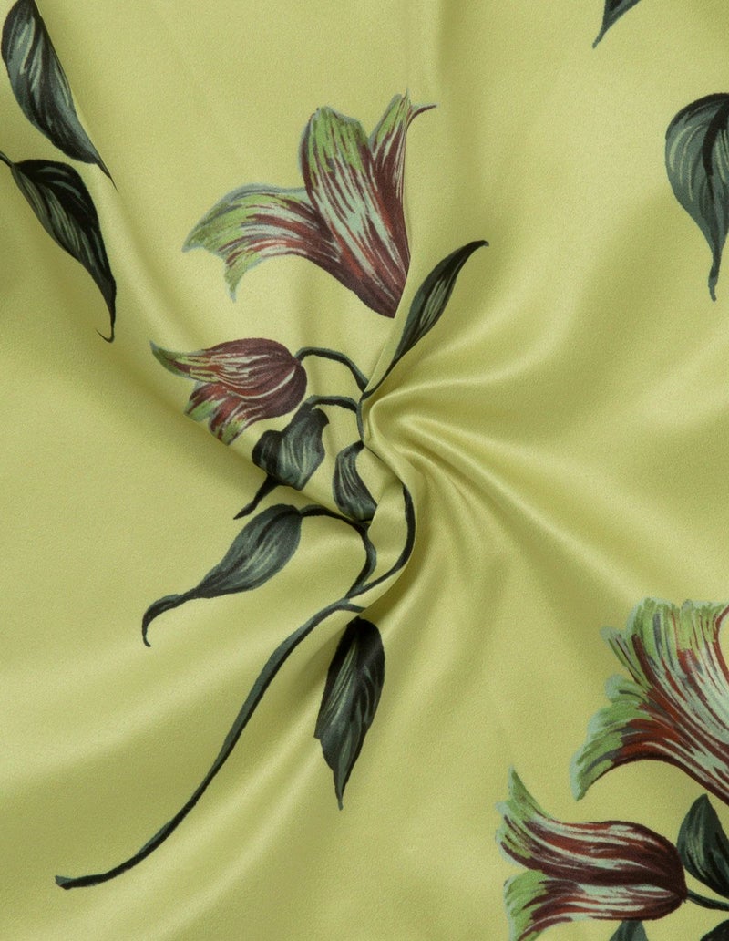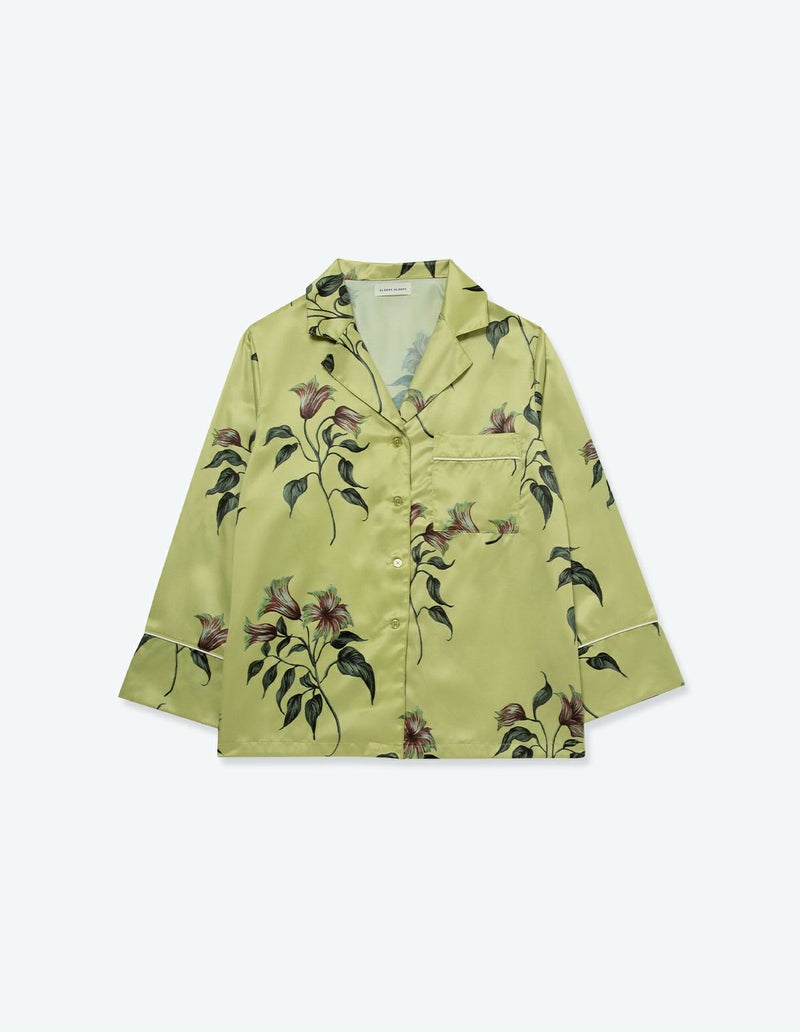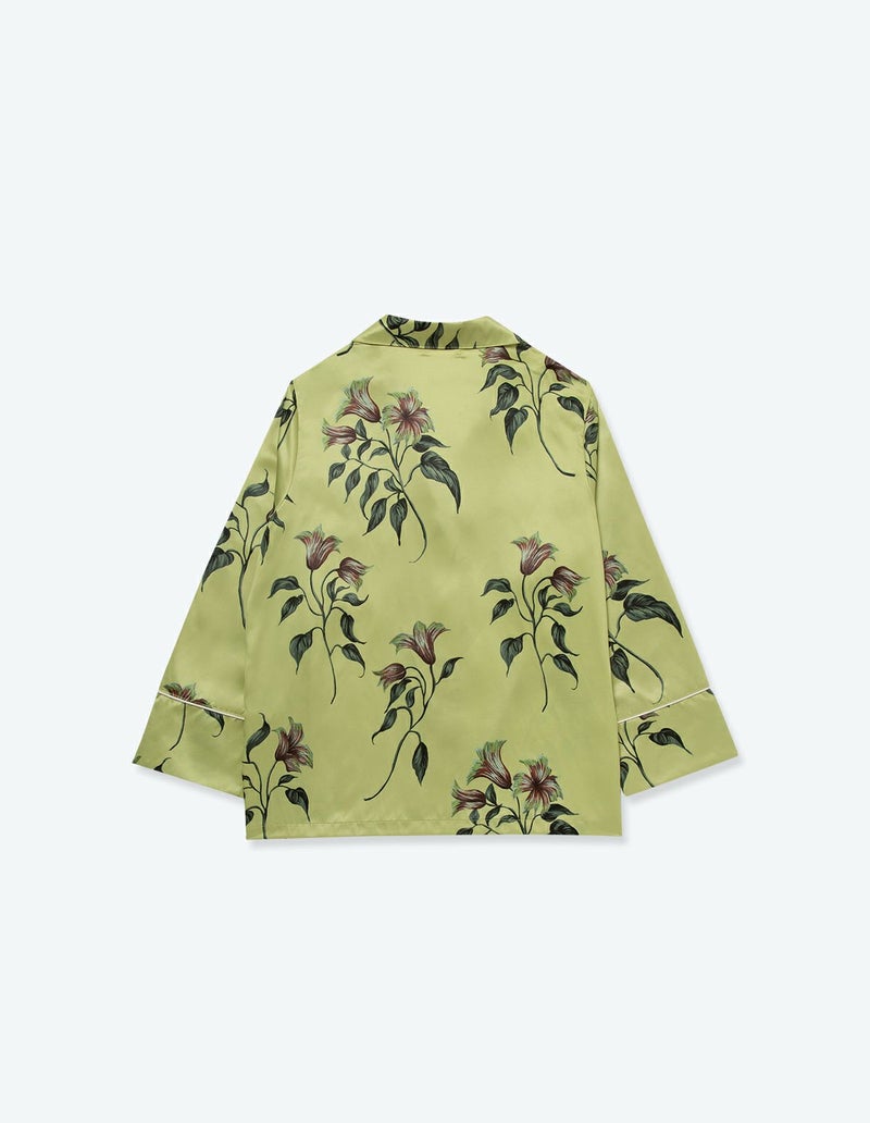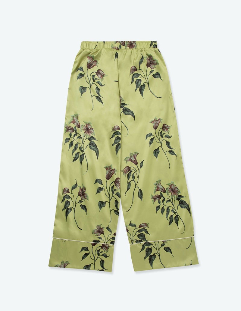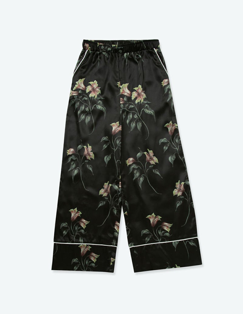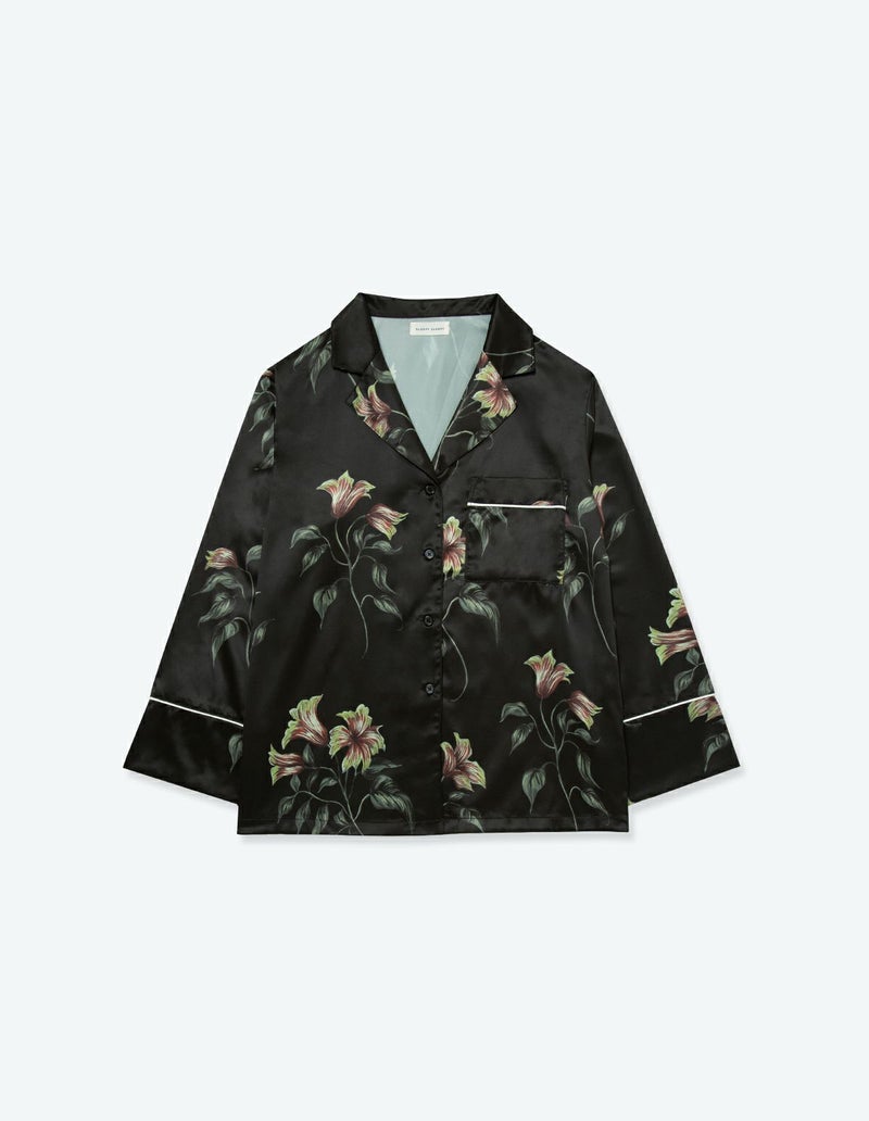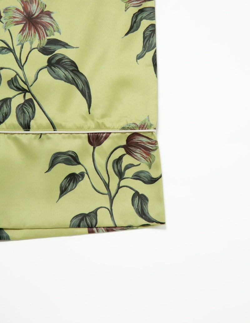 ペチュニアフラワーをモチーフにした細やかな描写のフラワープリントパジャマセット。 繊細かつ大胆な花柄は特別感のあるカラー展開で、落ち感のある生地とゆったりとしたワイドシルエット、微光沢のサテン生地との掛け合わせで高級感のある印象に仕上げました。ギフトとしても映えるフラワープリントされたBOXとのセットで特別なギフトシーズンを彩ります。