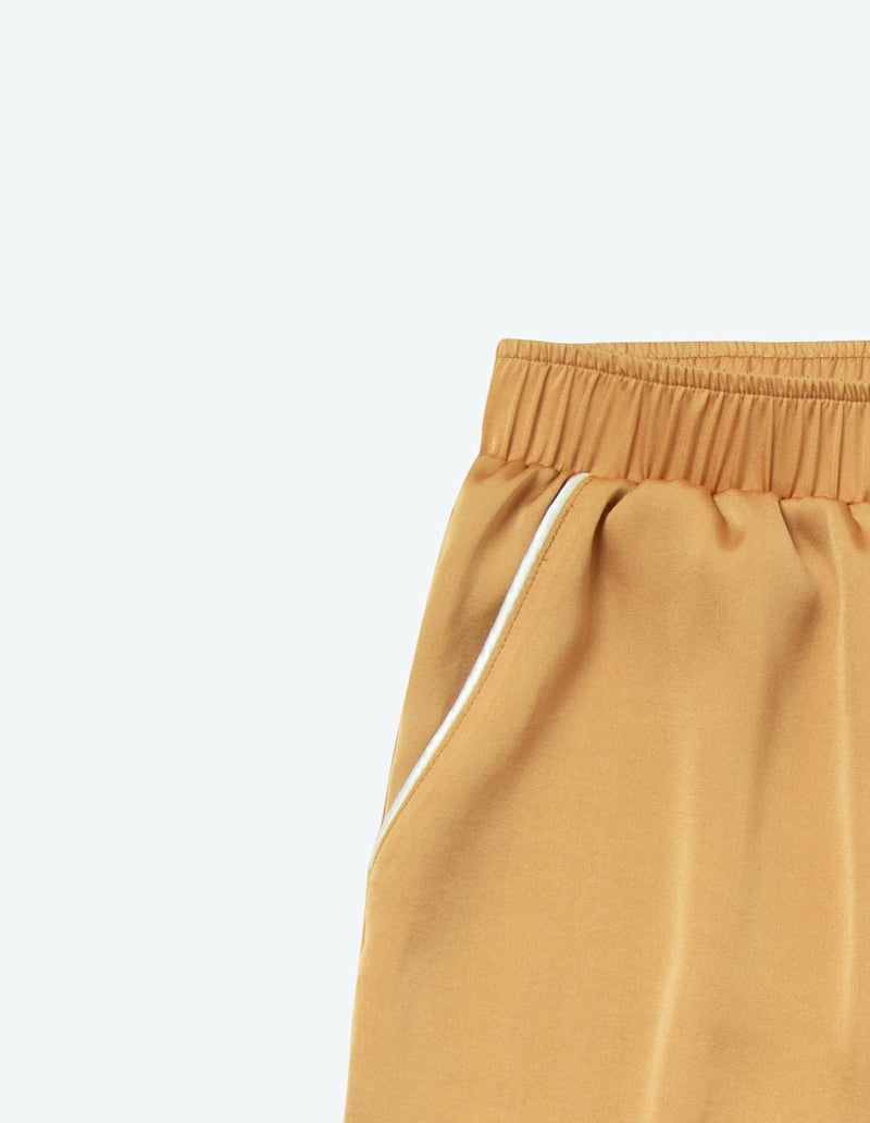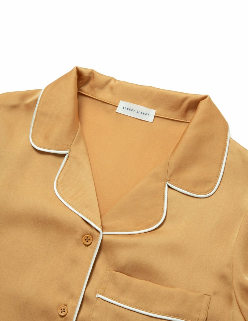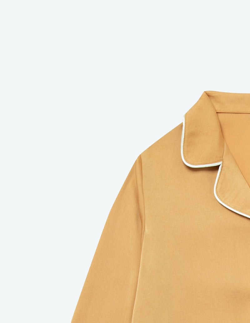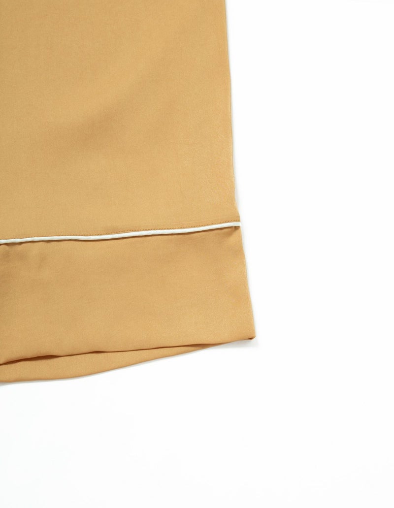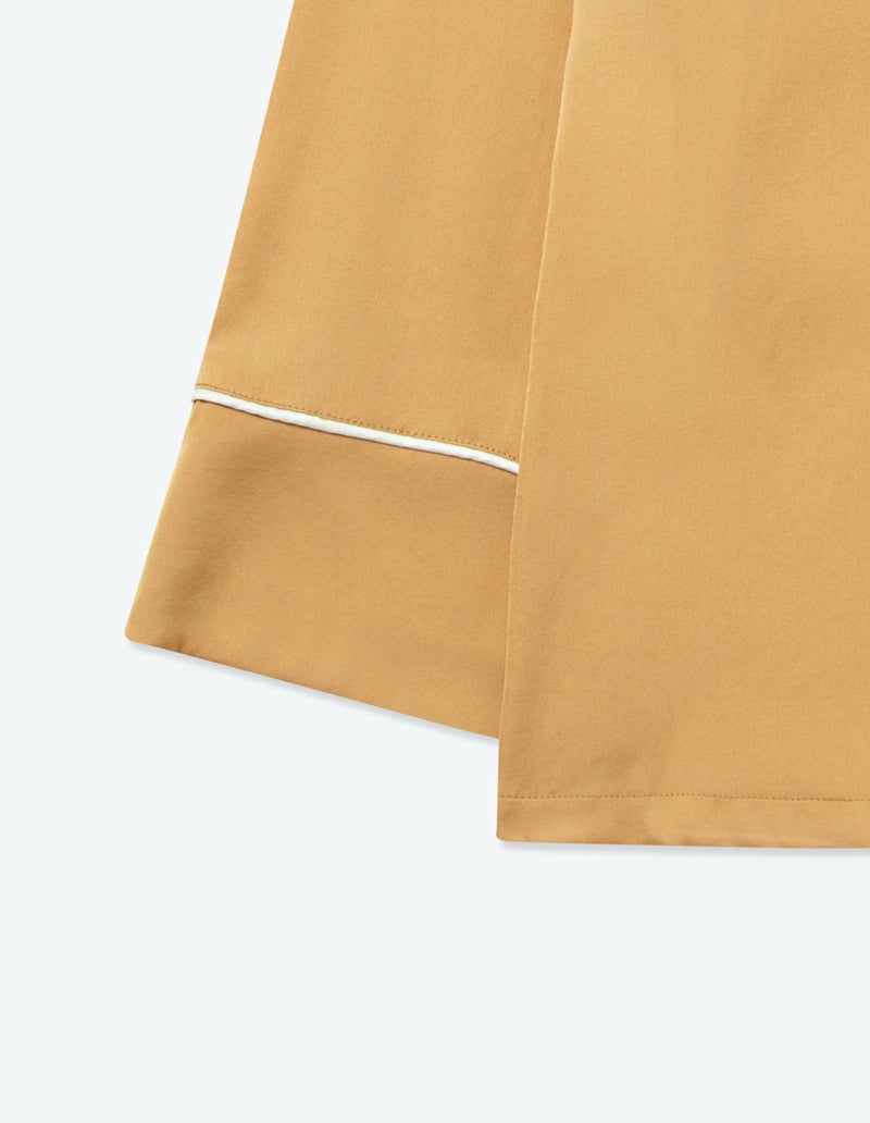 高級感のある微光沢のサテンを使用したパジャマセット。密に織られた生地で型崩れしにくく、長い間ご愛用いただけるシーズンレスなパジャマ。胸元のひらきすぎず、かつ抜け感を残した襟元や、丈感はゆったりとさせちょうどいいサイズ設計を追求。 幅広の切り替えと落ち感のある風合い柔らかな生地のかけ合わせですっきりとしたシルエットに。ニュアンスカラーのパッケージ付きですぐに贈れるギフトとしてもおすすめです。 ※2022年11月4日より、サイズをリニューアルいたしました。以前の商品サイズとは異なりますので、寸法をご確認ください。