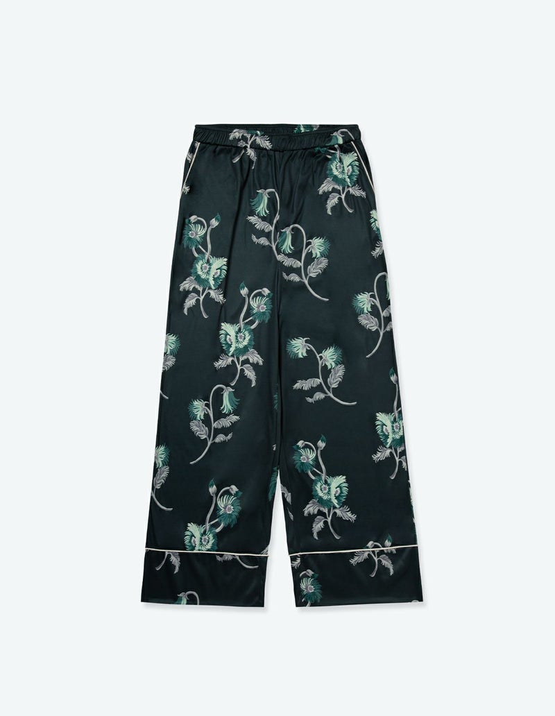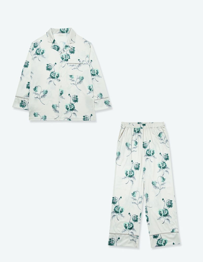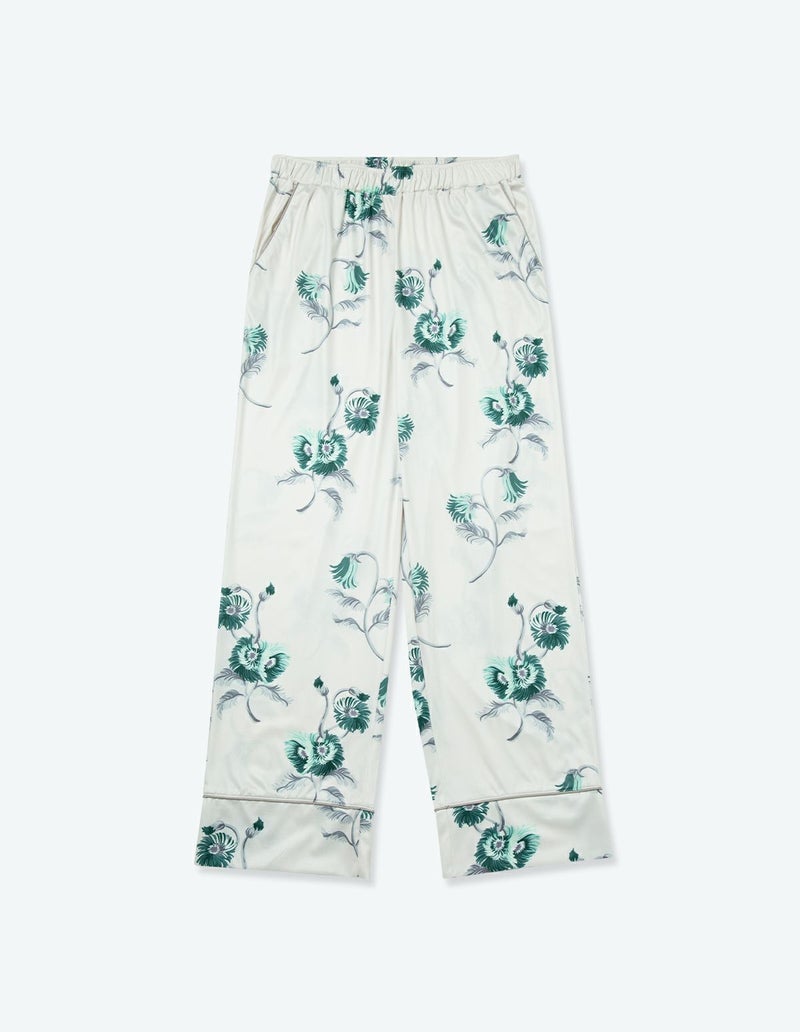 刺繍のようなタッチで描いたフラワープリントの長袖ロングパンツ。ソフトな肌触りの素材と掛け合わさることで上品な印象に。伸縮性の良いカットソー素材は薄手で落ち感があるためすっきりとしたシルエットを演出。さらりとして速乾性もあり心地よくお過ごしいただけます。 ペアアイテムとしてもおすすめ。