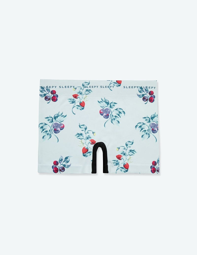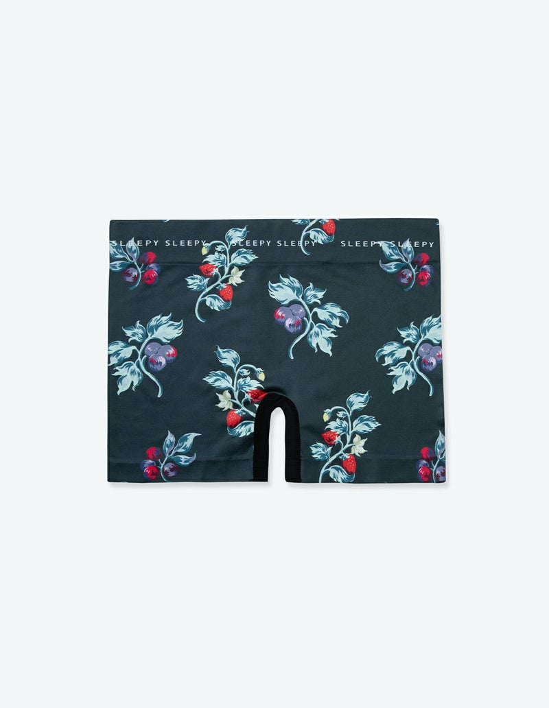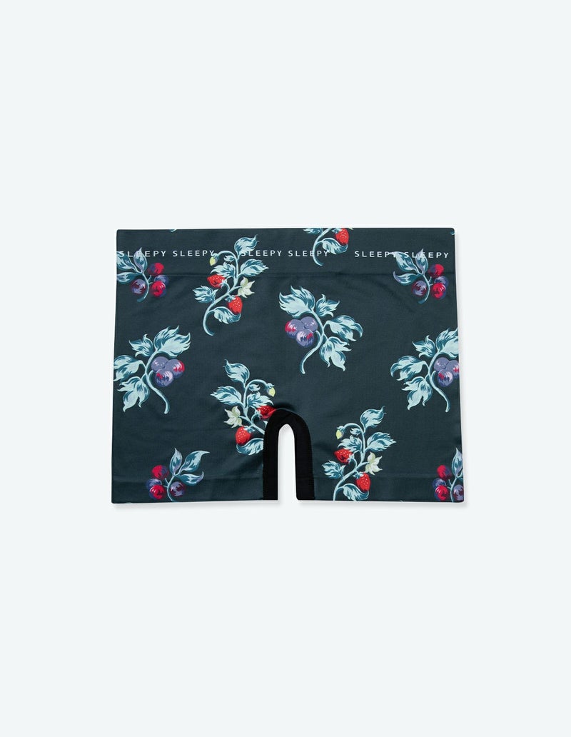 鮮やかなベリーを幻想的なカラーリングで描いたデザインのシームレスボディーボクサーパンツ。さらりとした肌触りをキープする速乾性と、フィット感と伸縮性に優れたポリエステルタイプ。キューブ型パッケージ付きですぐに贈れるギフトとしてもおすすめです。