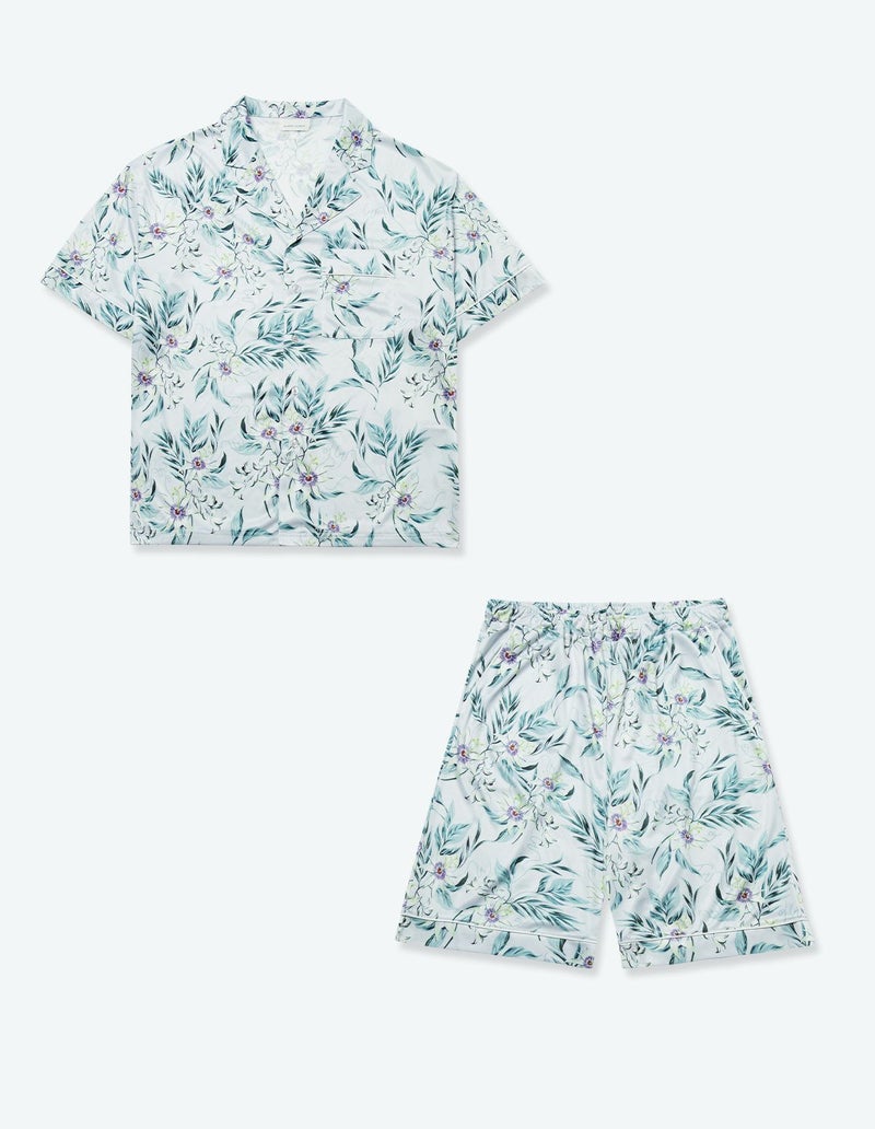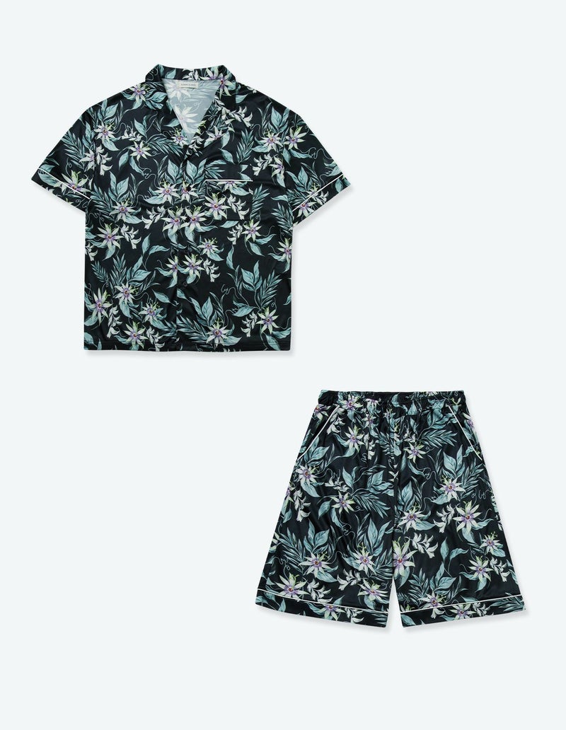 【ペア展開あり】メンズパッションフラワーパジャマ 半袖ハーフパンツ【メンズ】