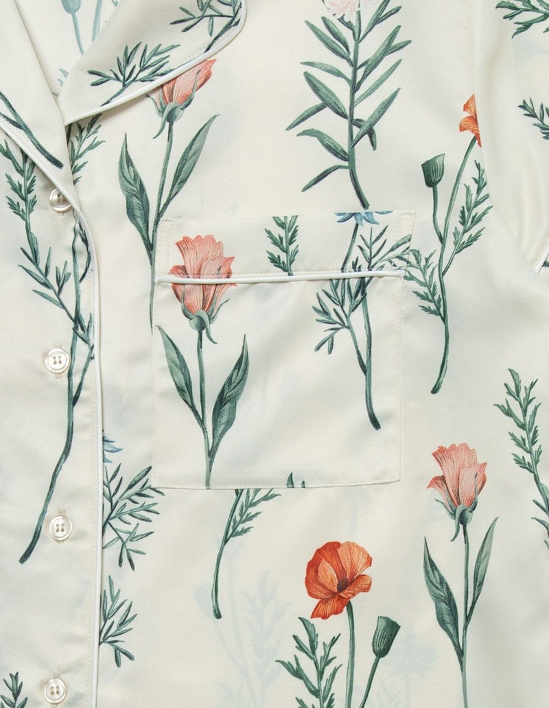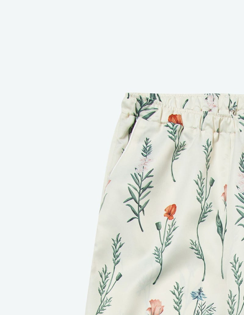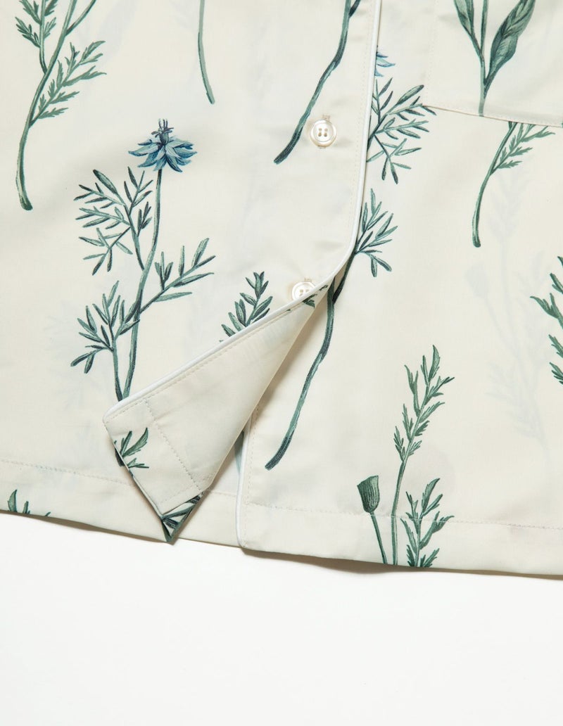 ゆらゆらとたゆたう野の花広がる理想の花園メドウガーデン。風にそよぐ草花の中を纏う牧歌的な情景を落とし込んだフラワープリントパジャマ。微光沢のサテン生地がさらりとした肌触りで、シーズンレスに着用可能な素材です。おそろいで着られるペアパジャマとして誕生日のギフト、結婚祝いなど様々なお祝いシーンにもおすすめ。