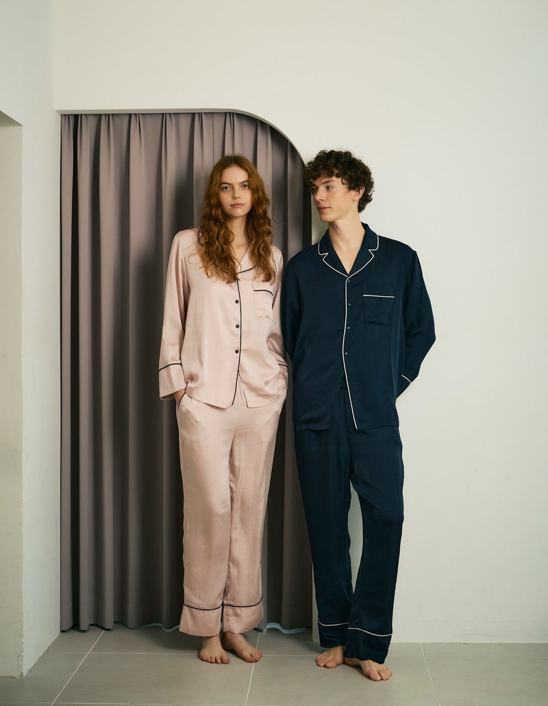 SLEEPY SLEEPY定番人気アイテムをペアでセットした、ギフトBOX入りパジャマセット。さまざまな方へのとっておきのギフトに。上品でエレガントさを感じさせる微光沢のあるサテン素材は、密な織りで型崩れも最小限。さらりとした着心地はオールシーズンお使いいただけます。