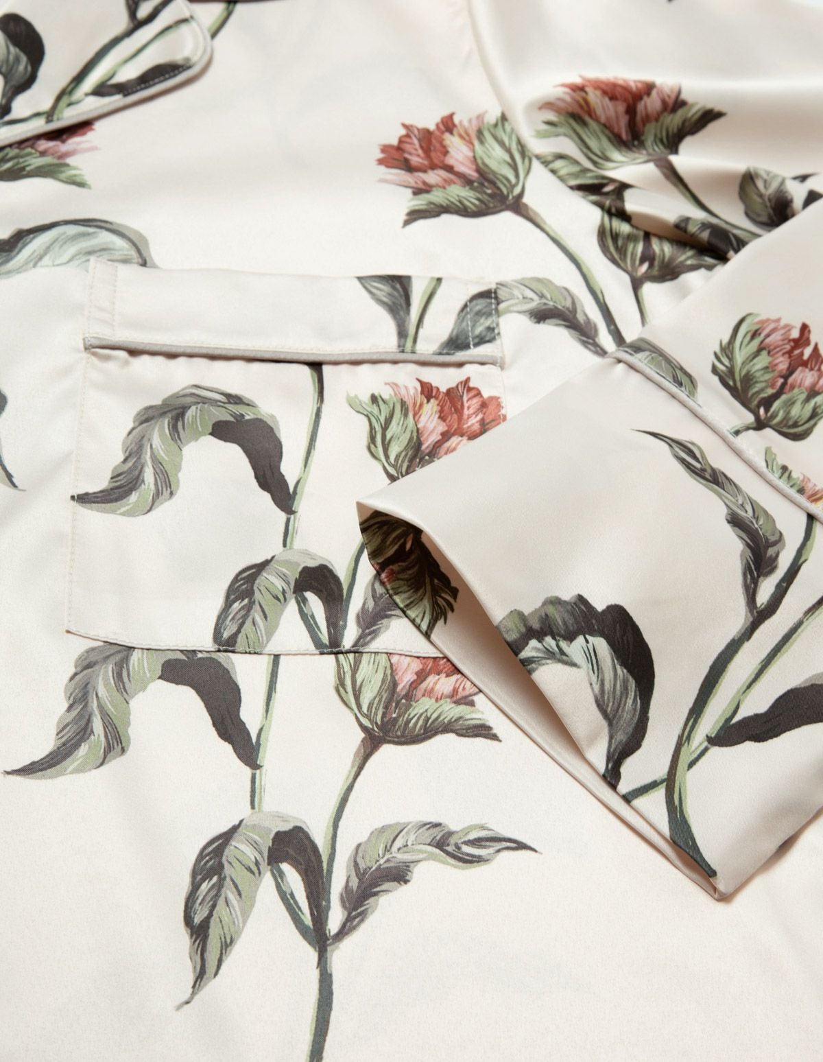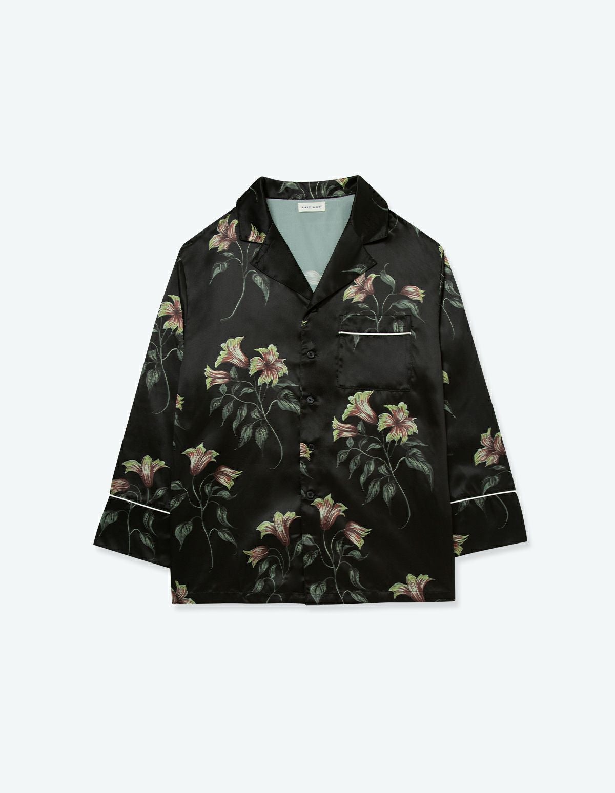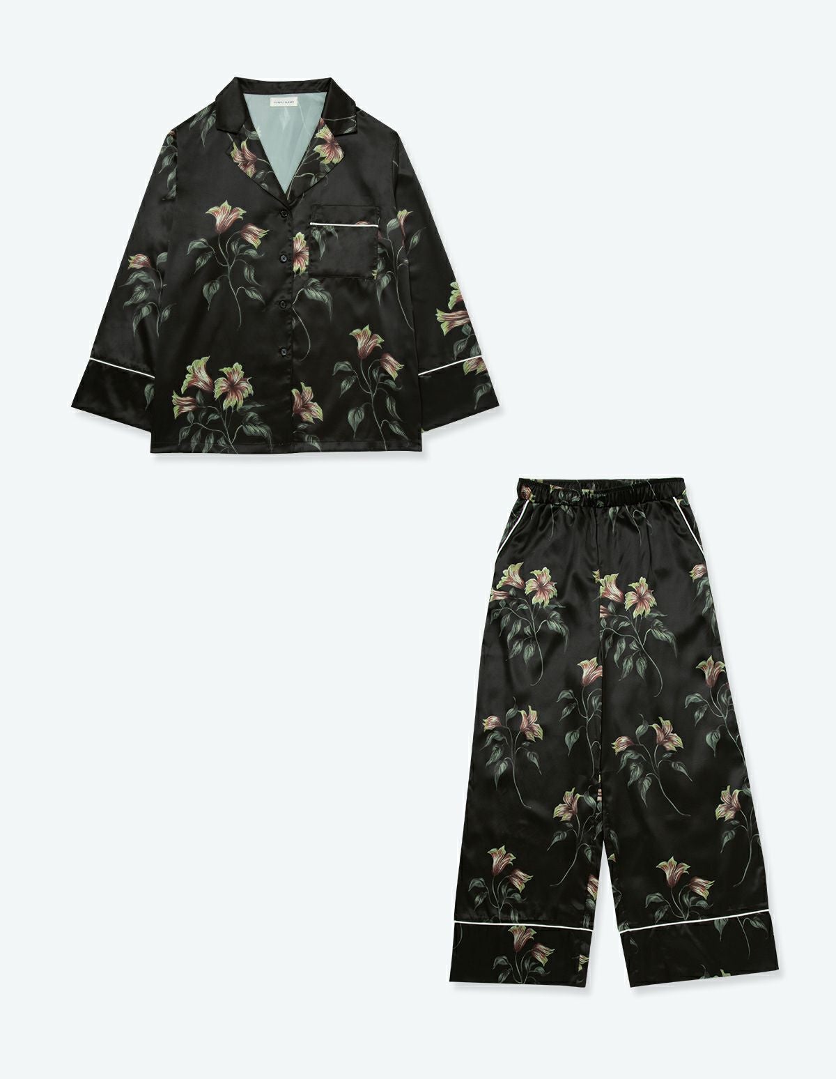 【ペア展開あり】サテンフラワーパジャマ/長袖ロングパンツ【BOX付】