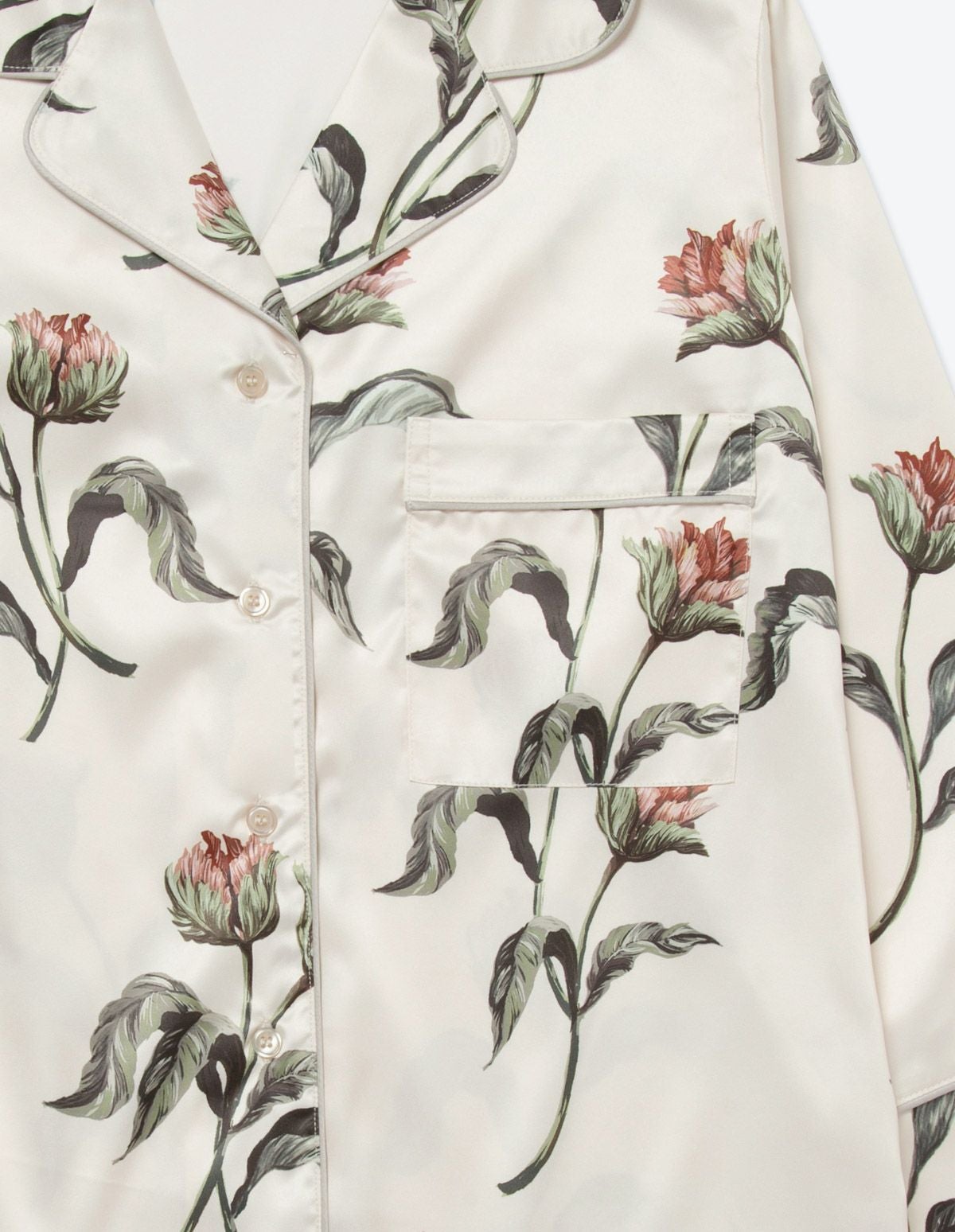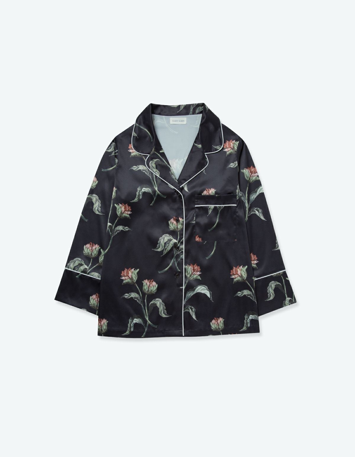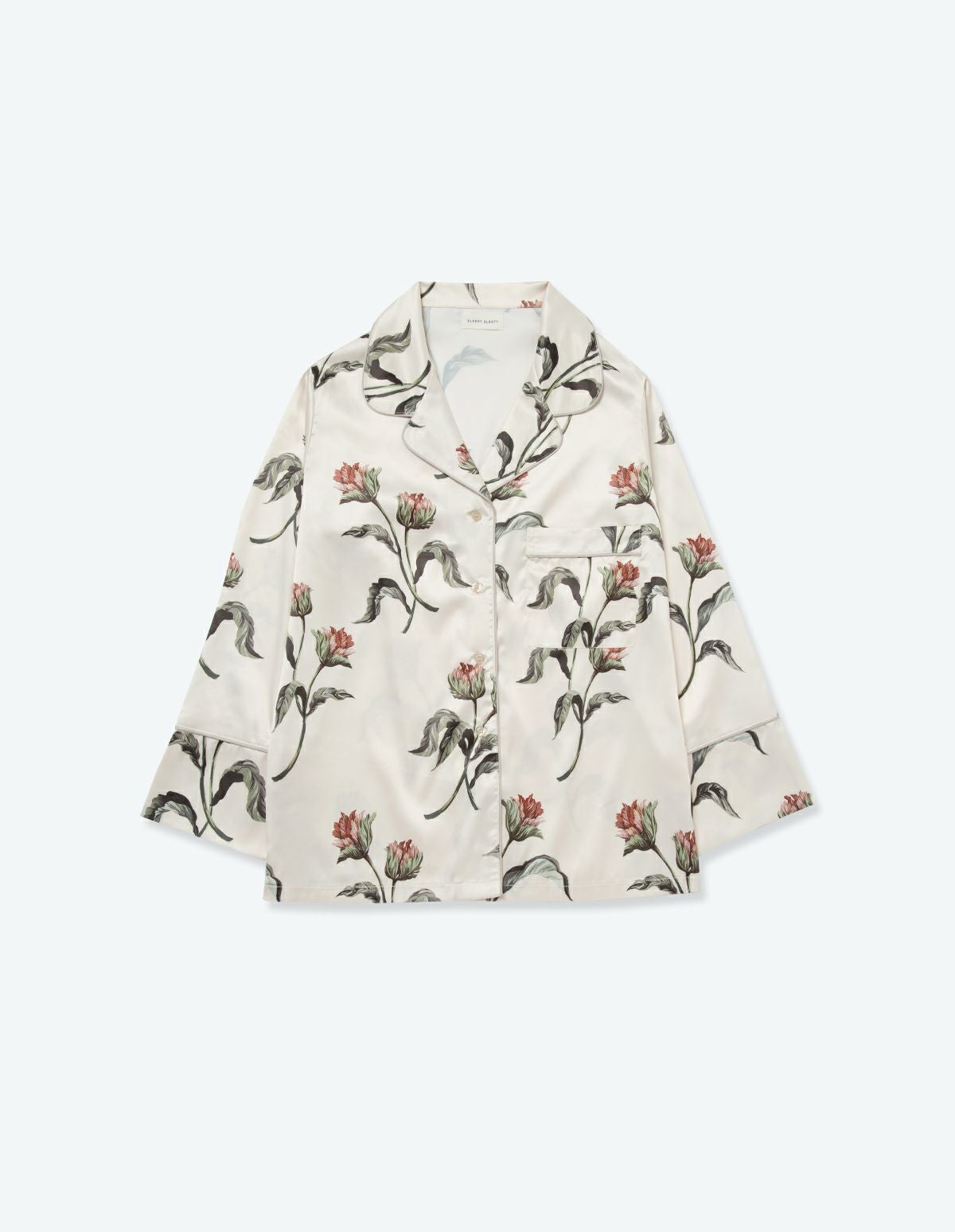 【ペア展開あり】サテンフラワーパジャマ/長袖ロングパンツ【BOX付】