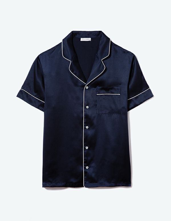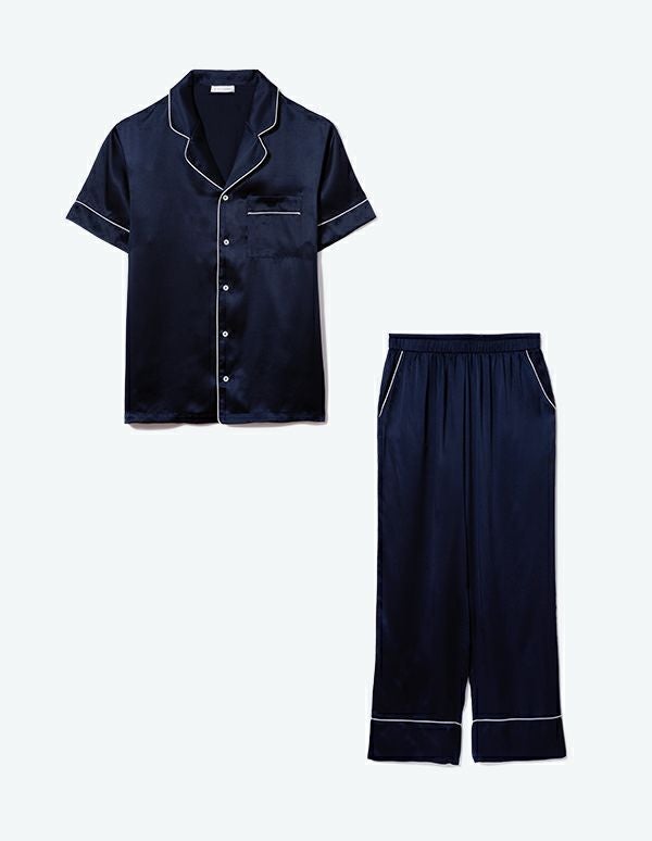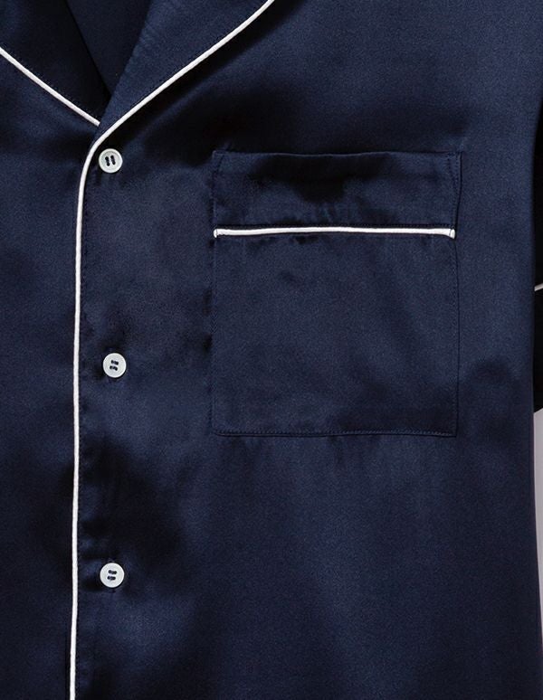 【ペア展開あり】メンズシルクパジャマ半袖&ロングパンツ/セット【メンズ/BOX付】(縫製リニューアル)