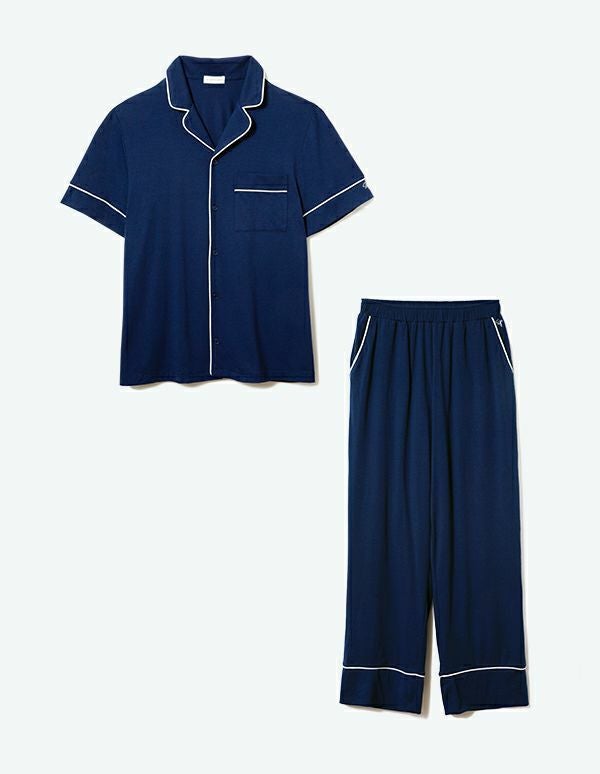 コットンベアパジャマ 半袖ロングパンツ【ペアパジャマ/限定BOX付】