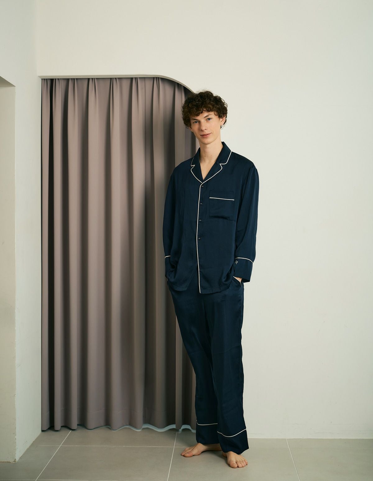 【ペア展開あり】メンズシルクパジャマ長袖&ロングパンツ/セット【メンズ/BOX付】