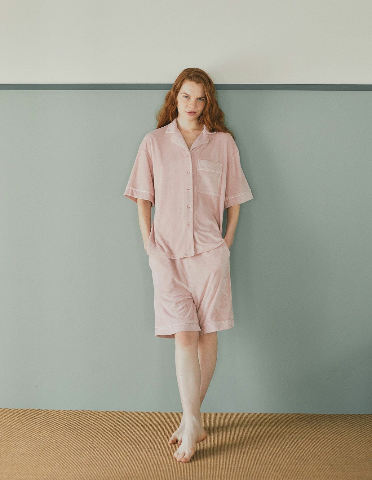 【ペア展開あり】<COOL TOUCH>ルーズパイルパジャマ 半袖ハーフパンツ