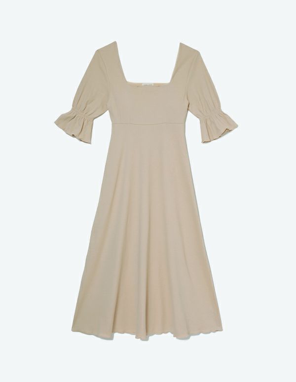 スクエアネックで抜け感のあるやわらかなコットンリブワンピース