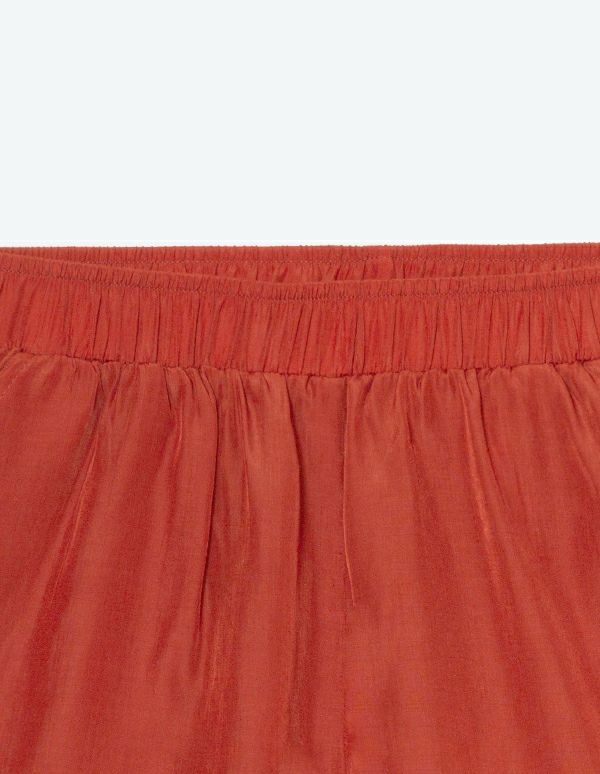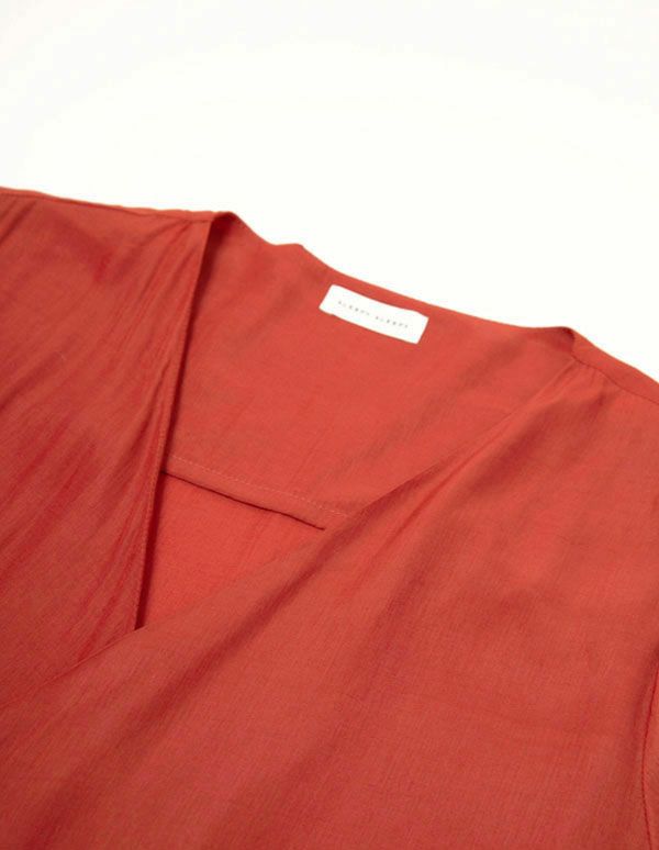 デザイン性と着心地の両方を兼ね備えたセットアップは、リラックスタイムを快適に過ごせるアイテムです。上品な微光沢のあるレーヨン生地を使用し、さらりとした肌触りが気持ちのいい長袖&ショートパンツのセットは、ボリューム感のある袖が女性らしく、ガウンのように羽織れるラップデザインで着回しの幅も広がります。シックに着られるネイビーと華やかなオレンジの2色展開です。