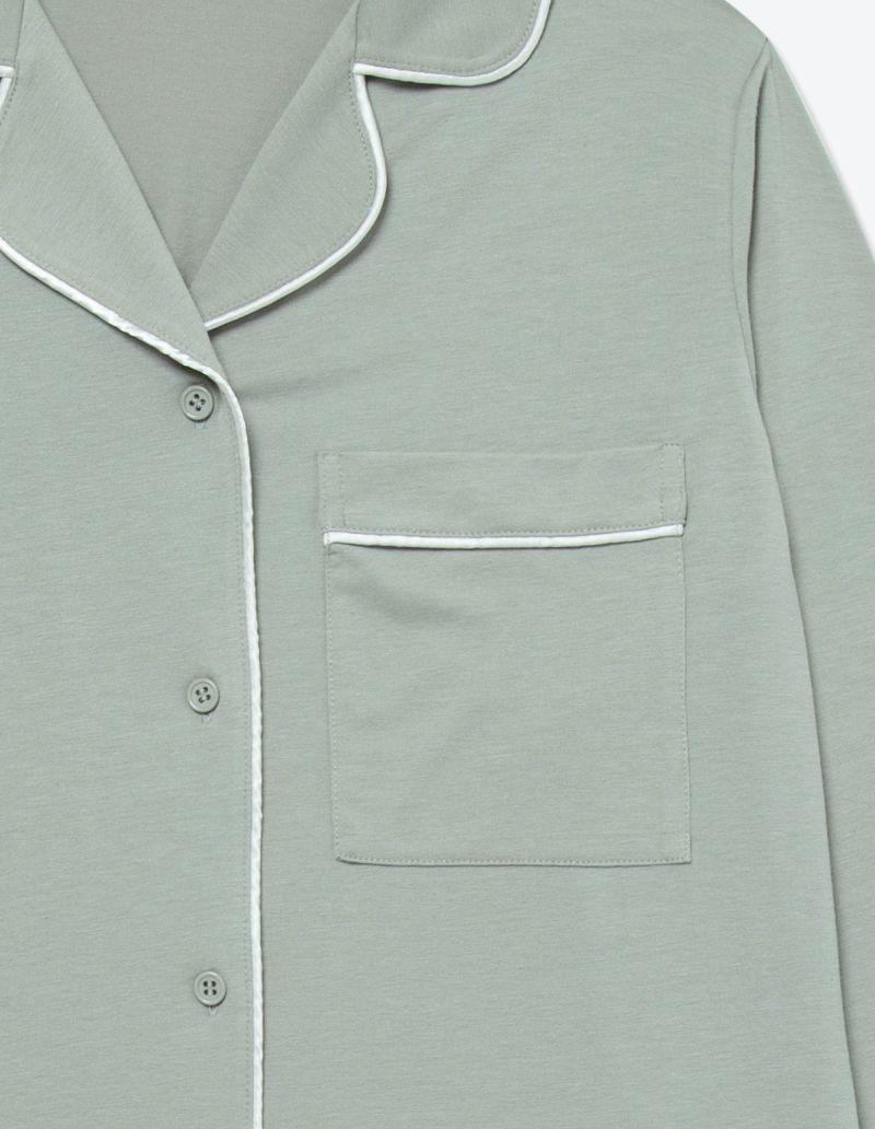 柔らかくストレッチの効いた綿混素材のパジャマワンピース。広めの袖口やパイピングの切り替えでガウンのようにも使用しやすいデザインに。胸元のひらきすぎず、かつ抜け感を残した襟元や、身幅や丈感はゆったりとさせたちょうどいいサイズ設計を追求。ニュアンスカラーのパッケージ付きですぐに贈れるギフトとしてもおすすめ。