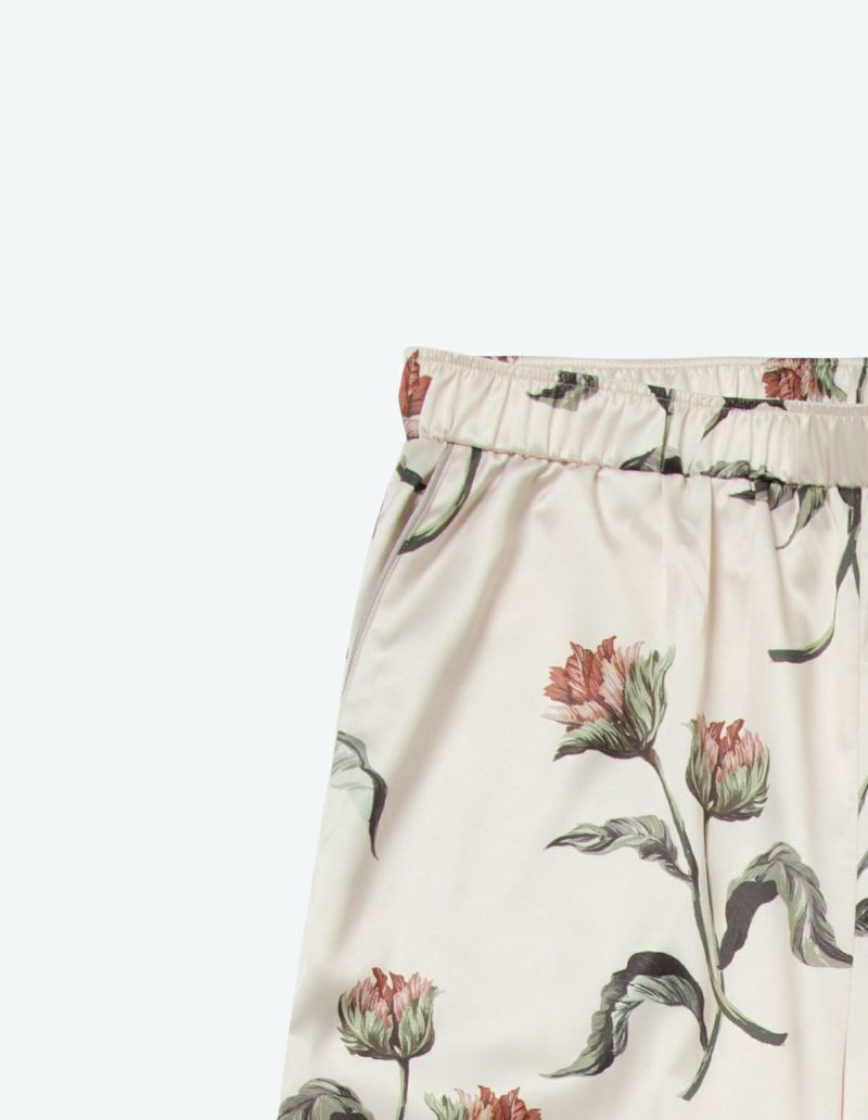 フラワープリントを施したパッケージ付きパジャマをペアでカセットしたフラワーパジャマギフトセット。 細やかなタッチが印象的な華やかなオリジナルフラワーを大胆にプリントした長袖ロングパンツセット。フラワープリントを施したパッケージ入りで特別なギフトにぴったり。微光沢のサテン生地がさらりとした肌触りでロングシーズン着用可能な素材です。ペアアイテムとしてもおすすめ。