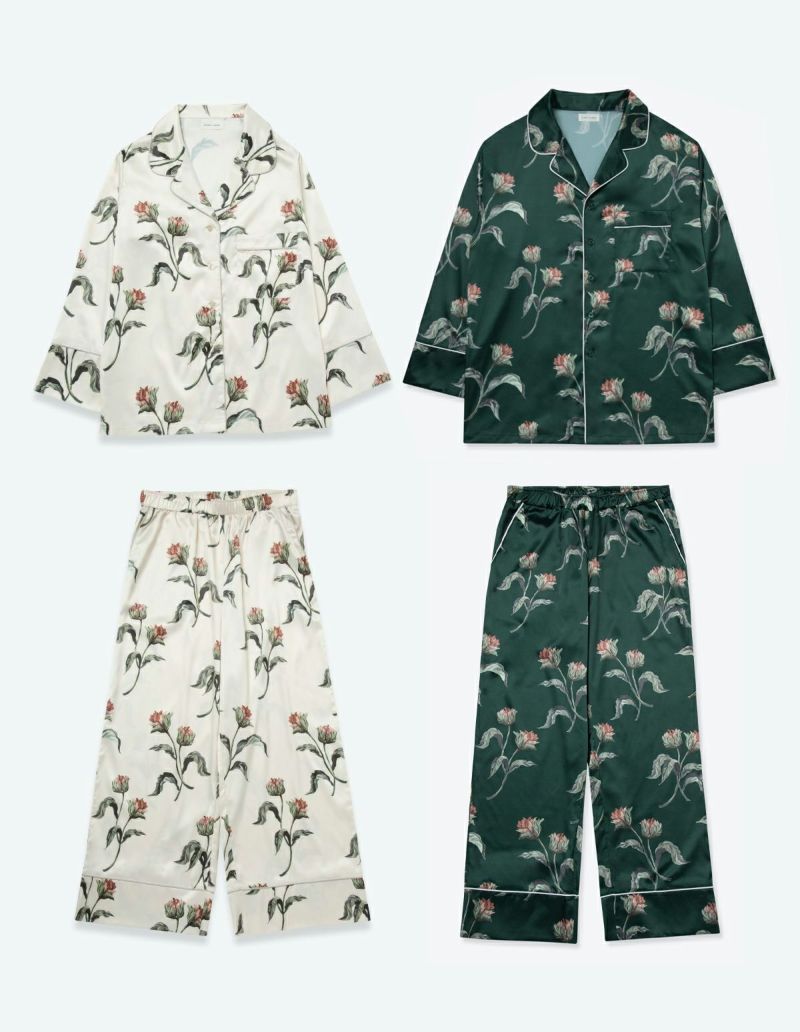 サテンフラワーパジャマ/長袖セット【ペアパジャマ/限定BOX付】