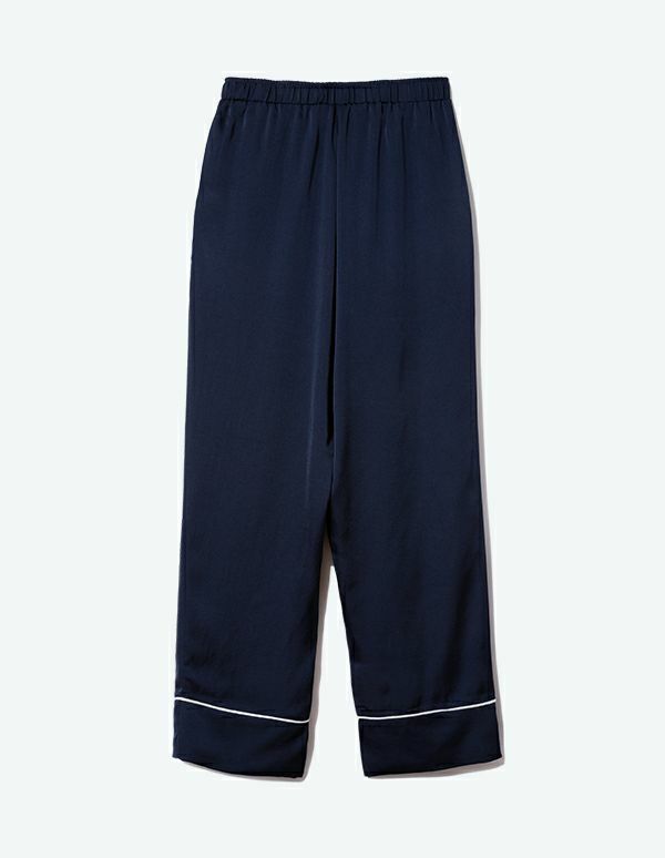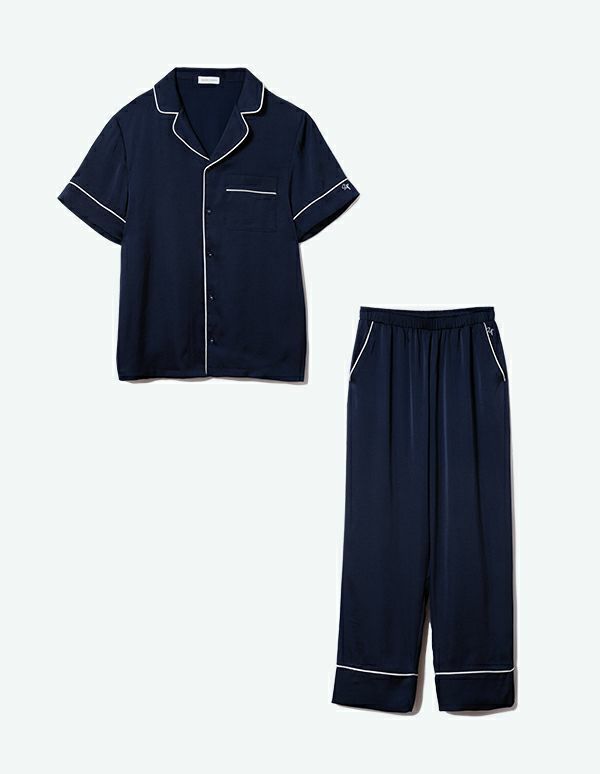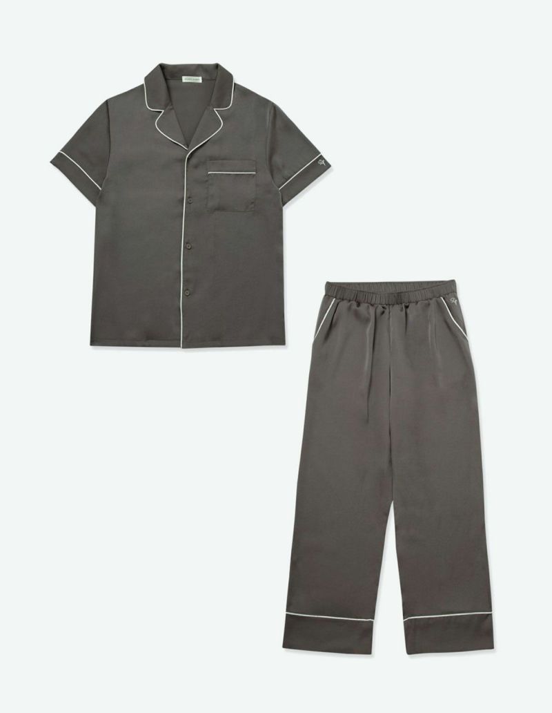 高級感のある微光沢のサテンを使用したパジャマセットです。密に織られた生地で型崩れしにくく、長い間ご愛用いただけるロングシーズン着用可能なパジャマ。 落ち感のある風合いが柔らかな生地のためすっきりとしたシルエットに。袖口&裾に幅広の切り替えが入ることで、袖・足長に見える効果も。 チャコークグレーのシックなパッケージ付き。