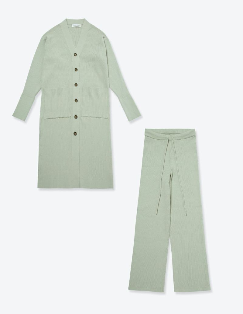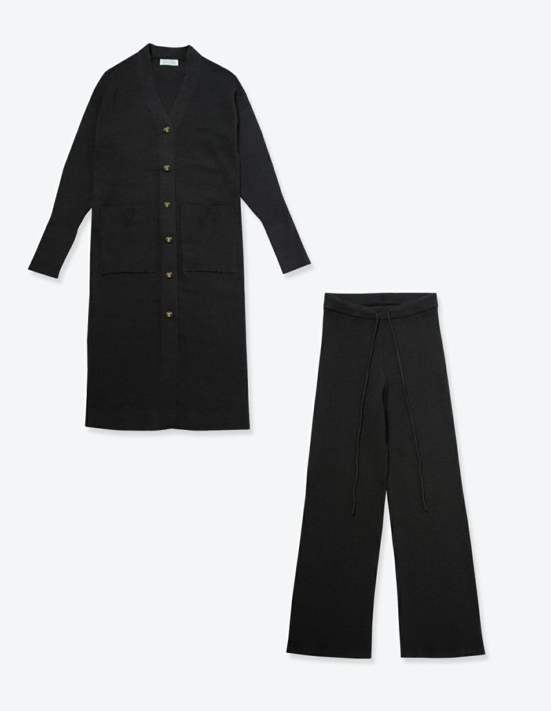 柔らかい手触りのロングリブカーディガンとパンツのセットアップ。 贅沢な丈感とベーシックなデザインで、保温性も高く暖かくお過ごしいただけます。 それぞれ単独でも他のパジャマセットやワンピースとも合わせて使いやすいアイテムです。 〈商品に関しまして〉 やわらかくのびの良い着心地を重視してお作りしております。 お洗濯の際は平干しをし、保管の際はハンガーを使用せず たたみで保管ください。 ニット製品は、生産過程上、加工によってサイズに誤差が 生じる場合がございますが品質上の問題はございません。