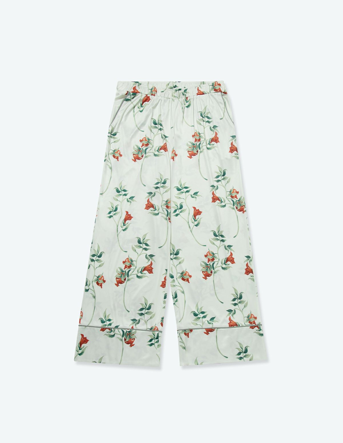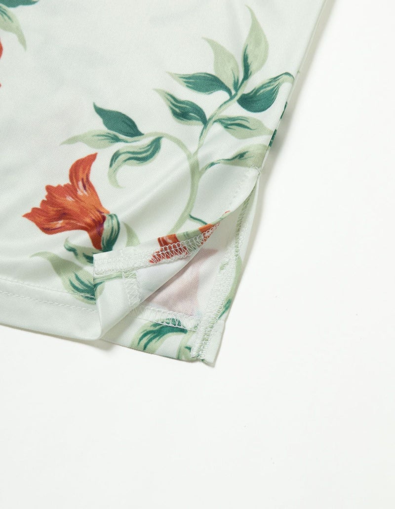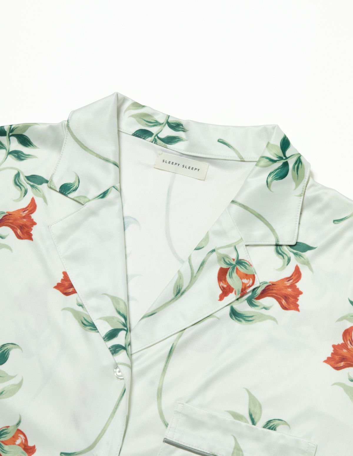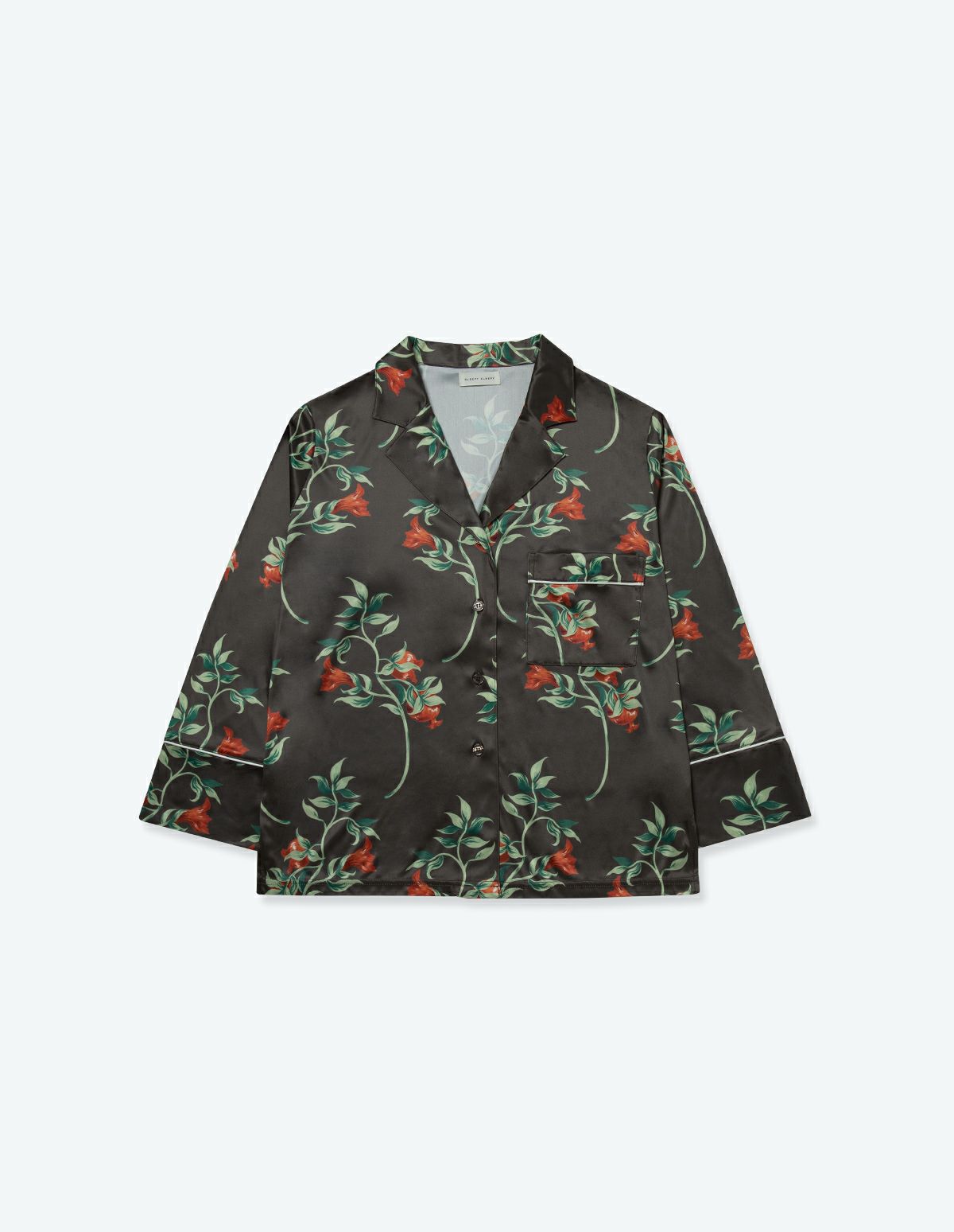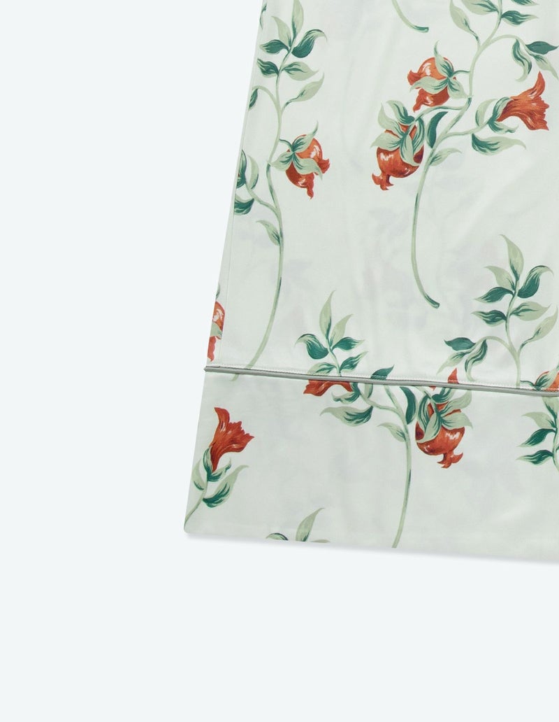 「祝福」の象徴として描かれるザクロと、対をなすような鮮やかな花と葉っぱのコントラストを甘な曲線で描いたフラワープリントパジャマ。 カットソー生地の長袖ロングパンツで微光沢のある生地感は上質なイメージを演出。さらりとした肌触りで心地よく着用いただけます。 ペアアイテムとしてもおすすめ。