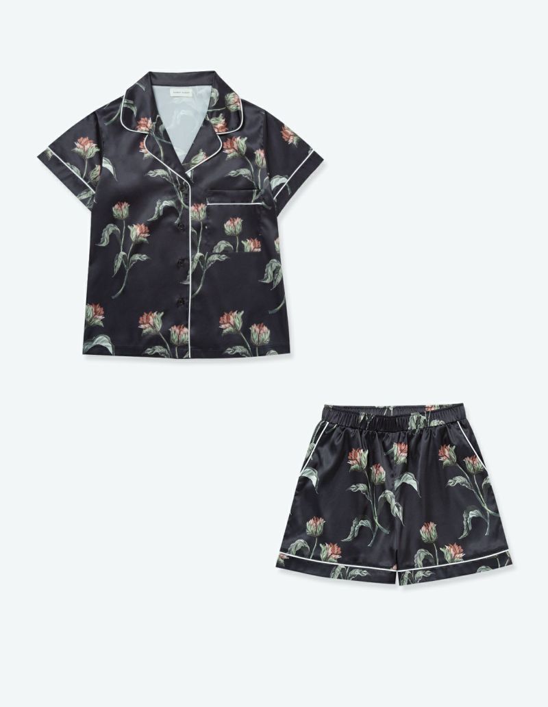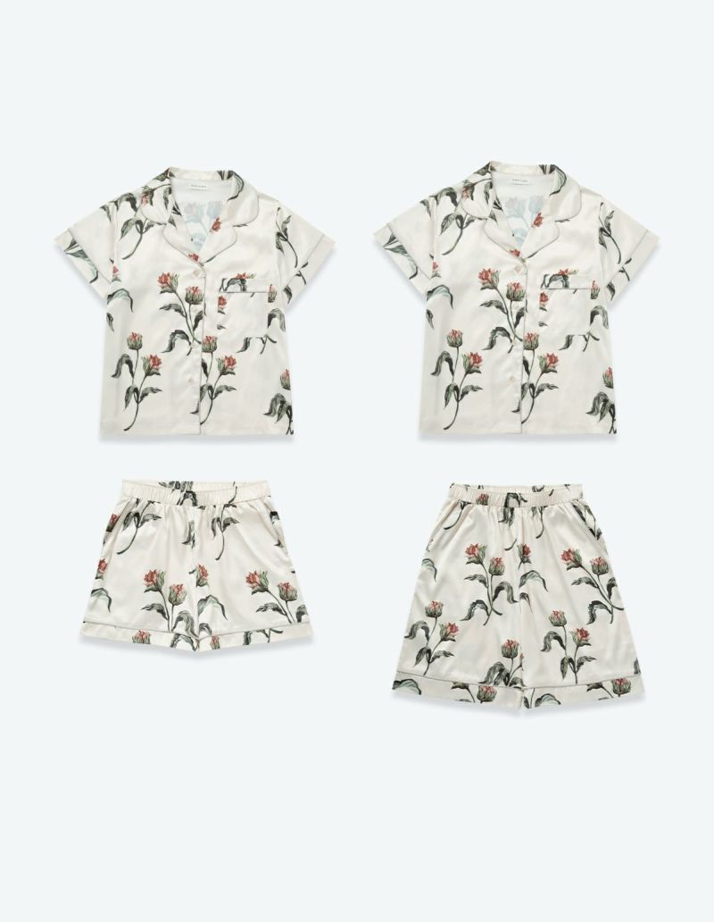 サテンフラワーパジャマ/半袖セット【ペアパジャマ/限定BOX付】